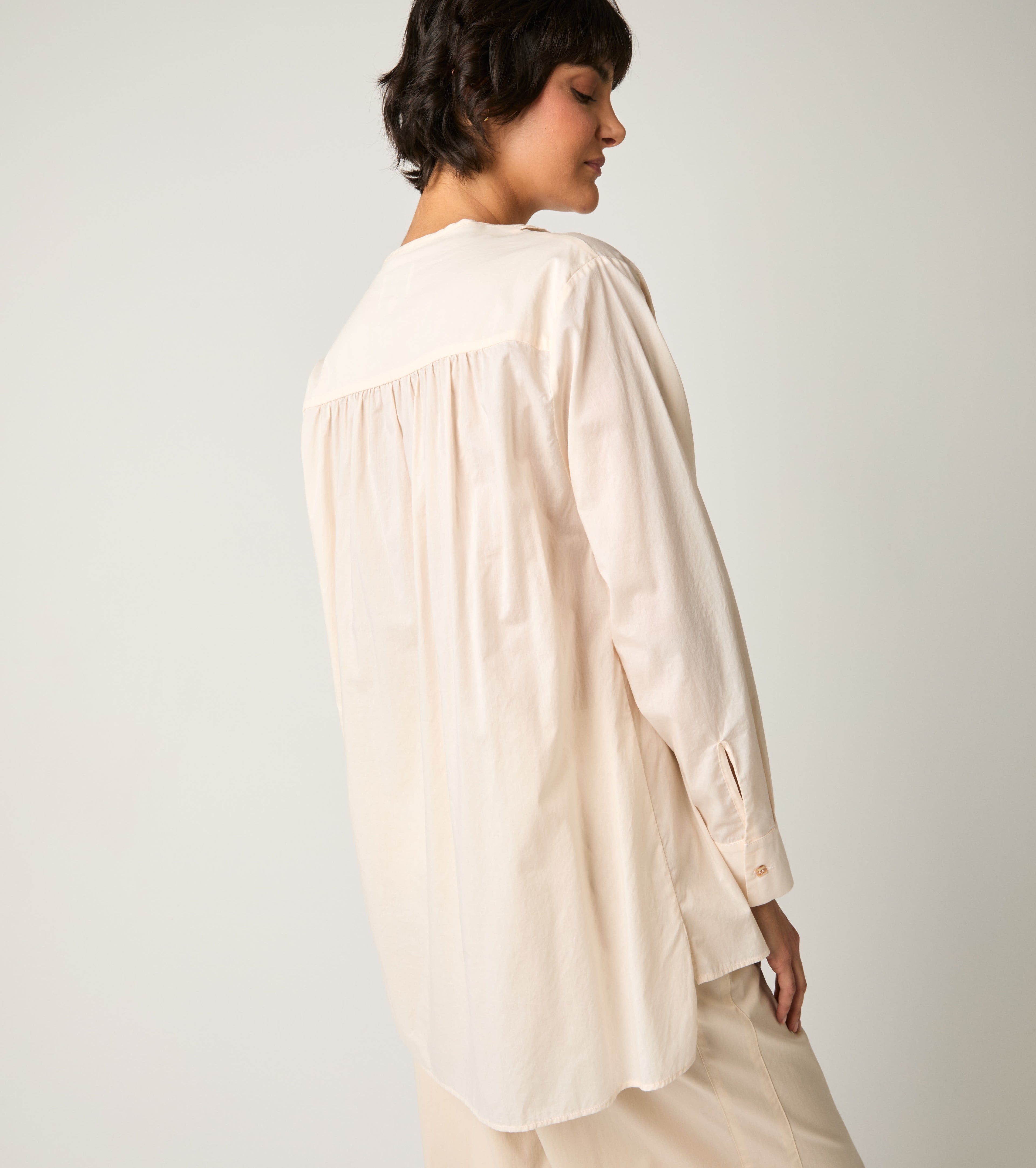 Изберете блузата, изработена от памук с лека и свежа текстура на допир.