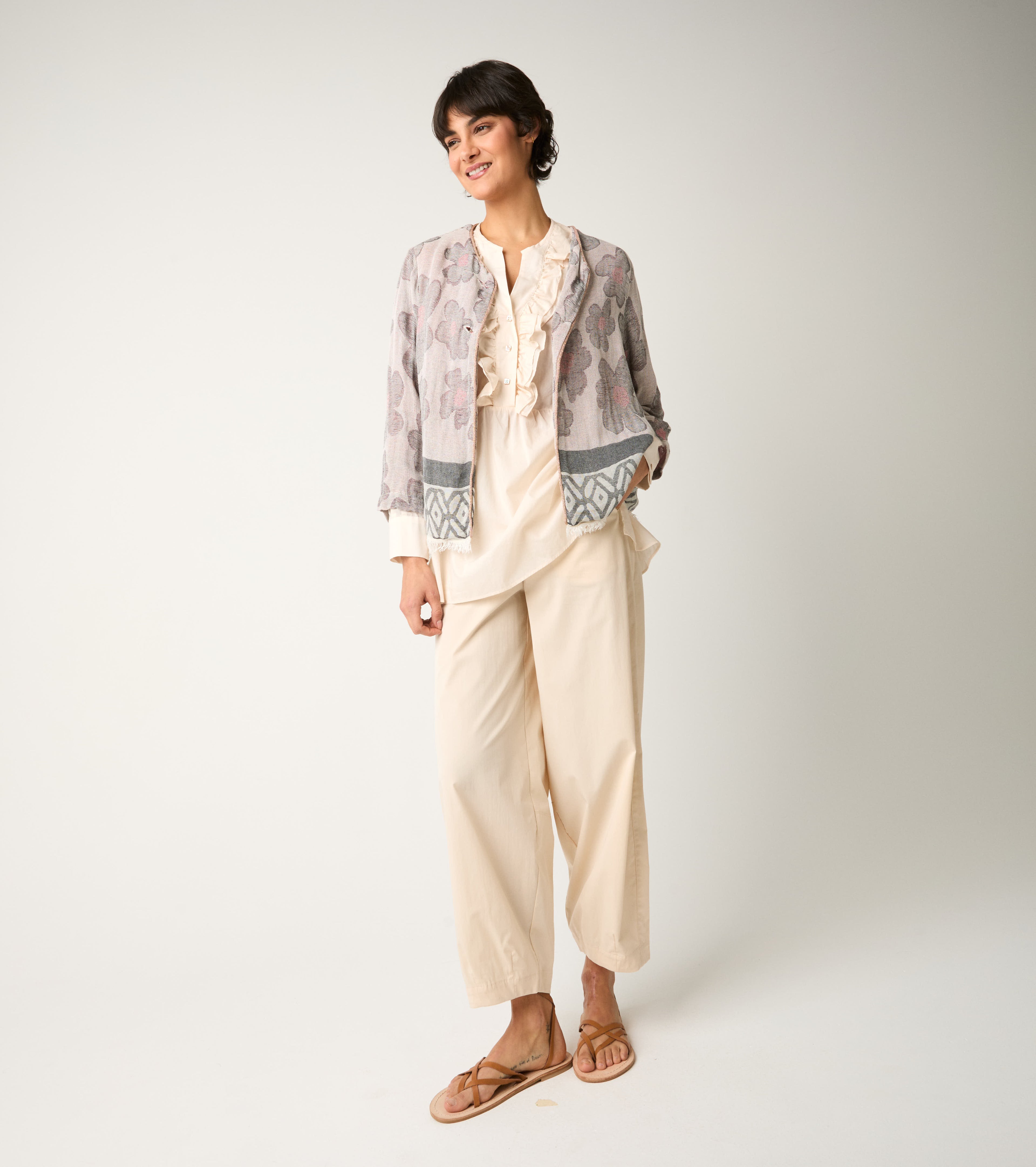 Женствена и изискана, блузата Alessia Santi с волани се съчетава идеално с леки панталони от деним. Допълнете стила с плоски сандали и чанта за пазаруване.