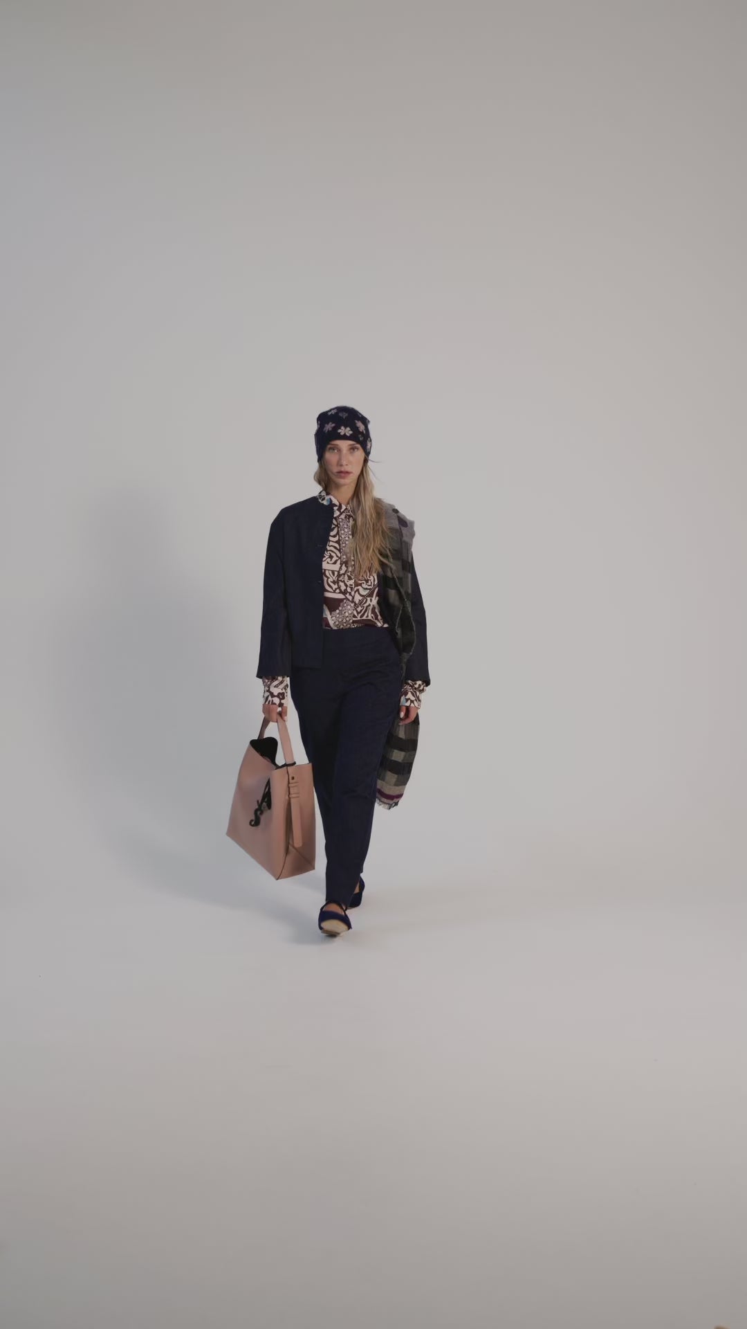 Il modello ha una linea morbida con colletto classico e maniche lunghe. Per un look contemporaneo e femminile d'ispirazione boho-chic.