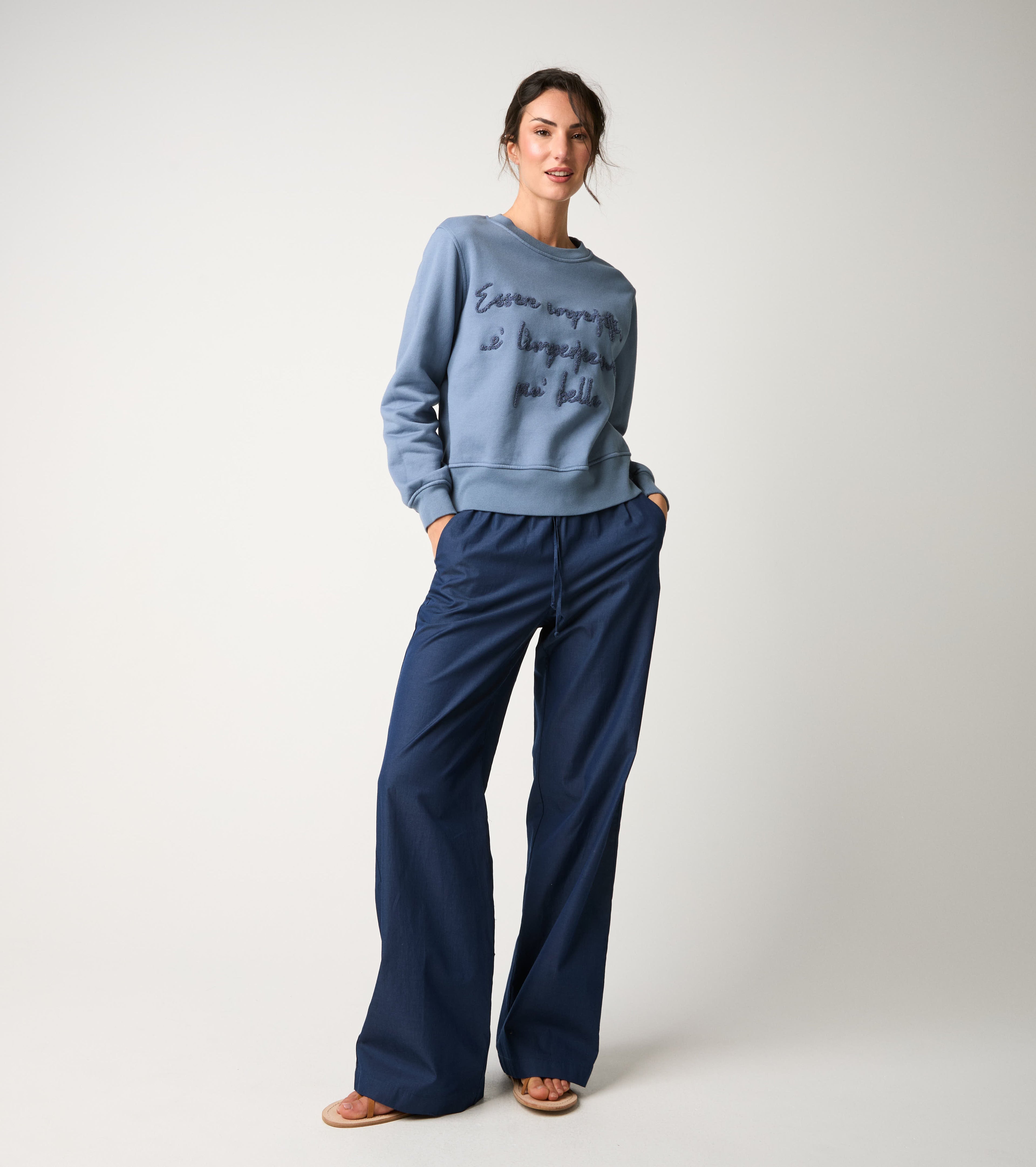 Scegli la felpa realizzata in morbido cotone con lettering ricamato sul davanti, espressione distintiva dello stile raffinato Alessia Santi.