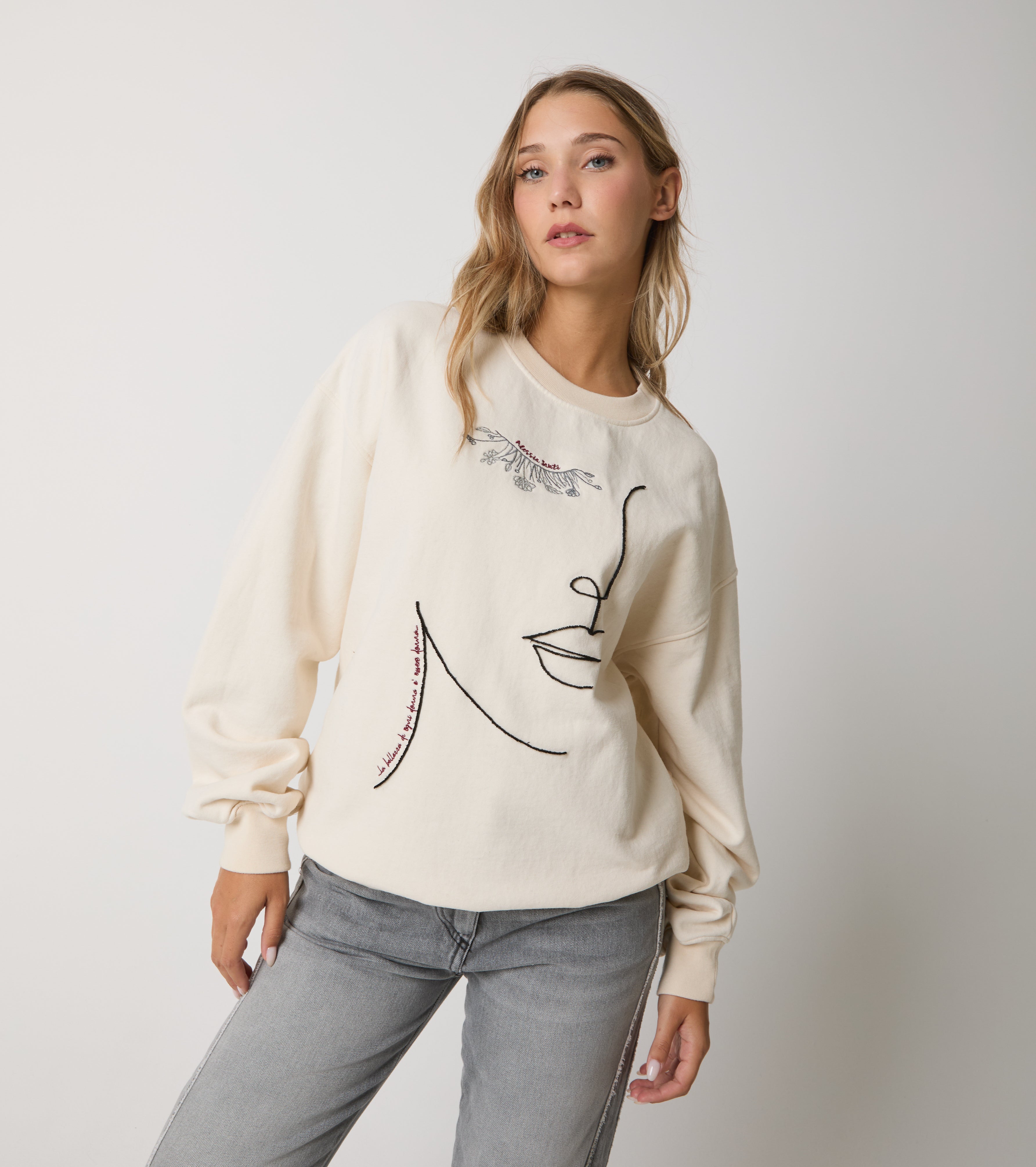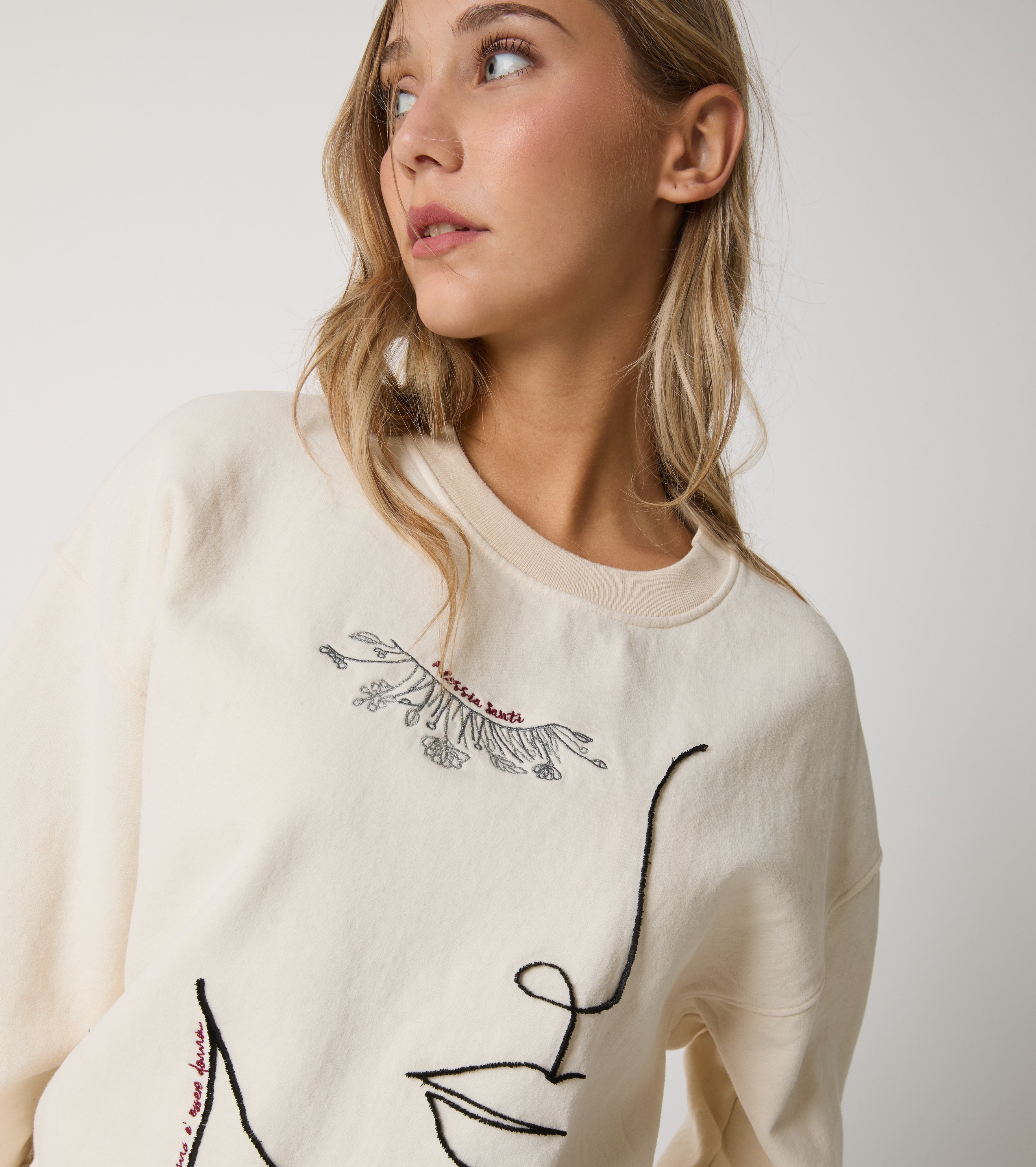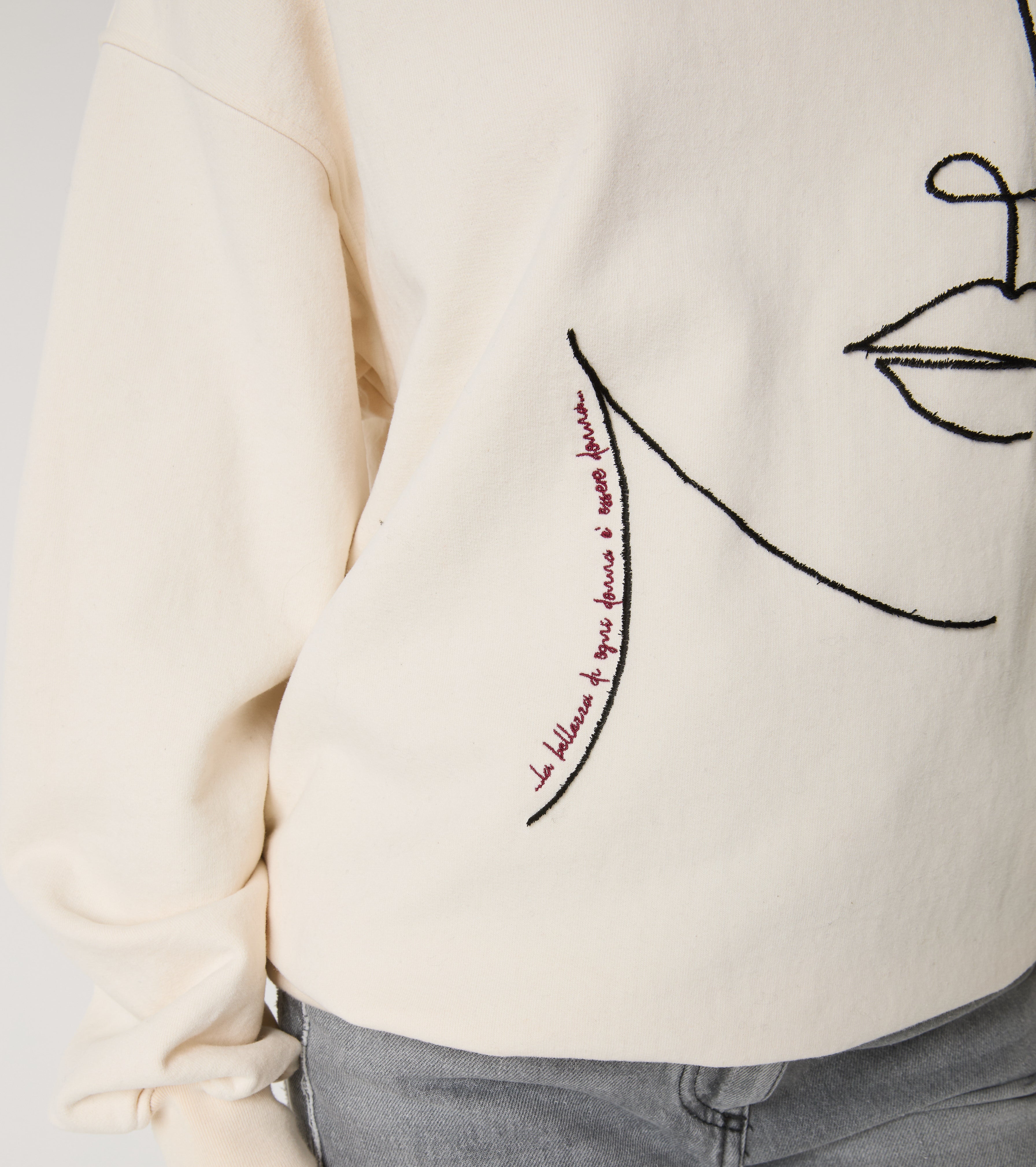 Scegli la felpa realizzata in morbido cotone organico con un sensuale motivo grafico sul davanti.