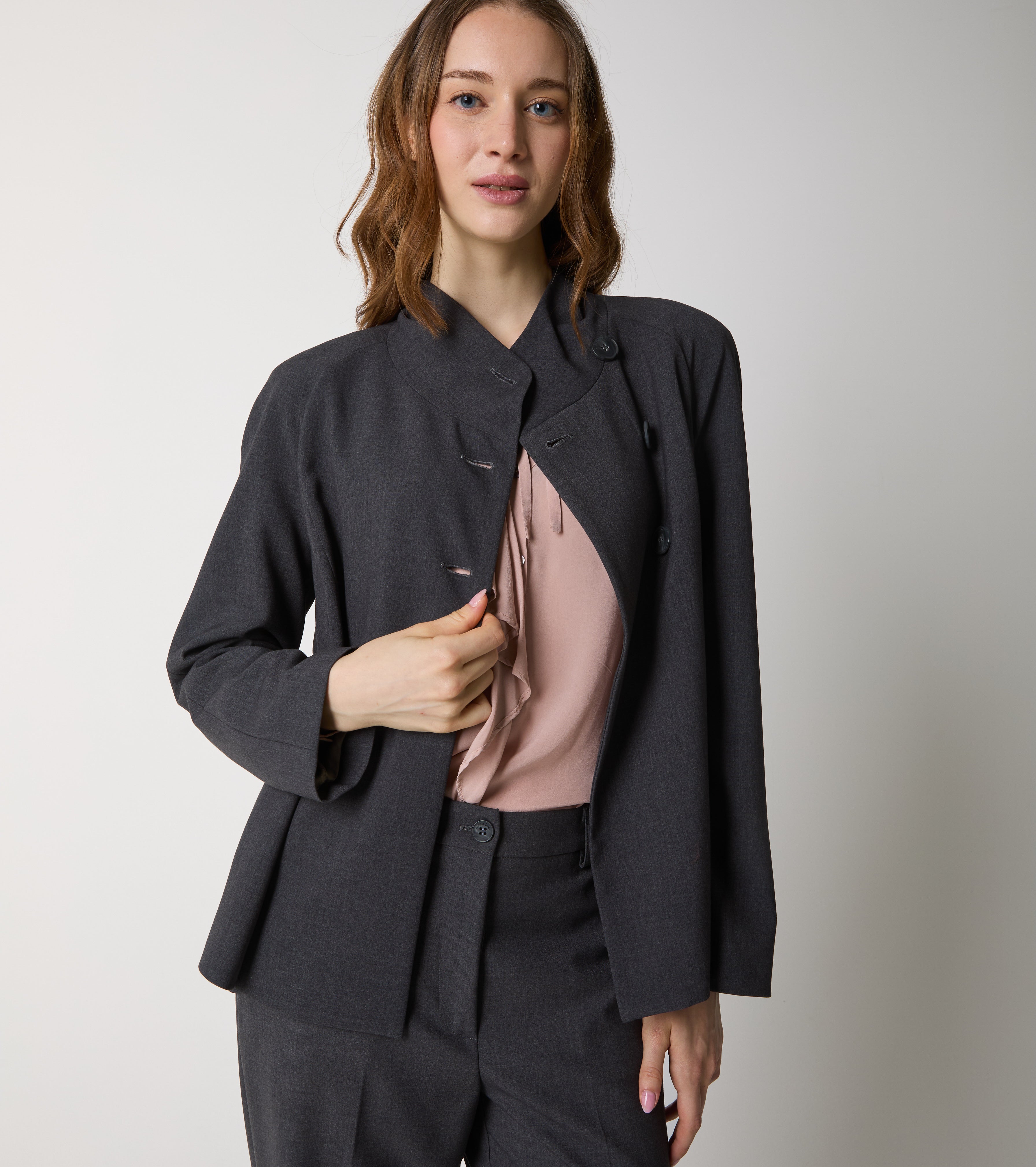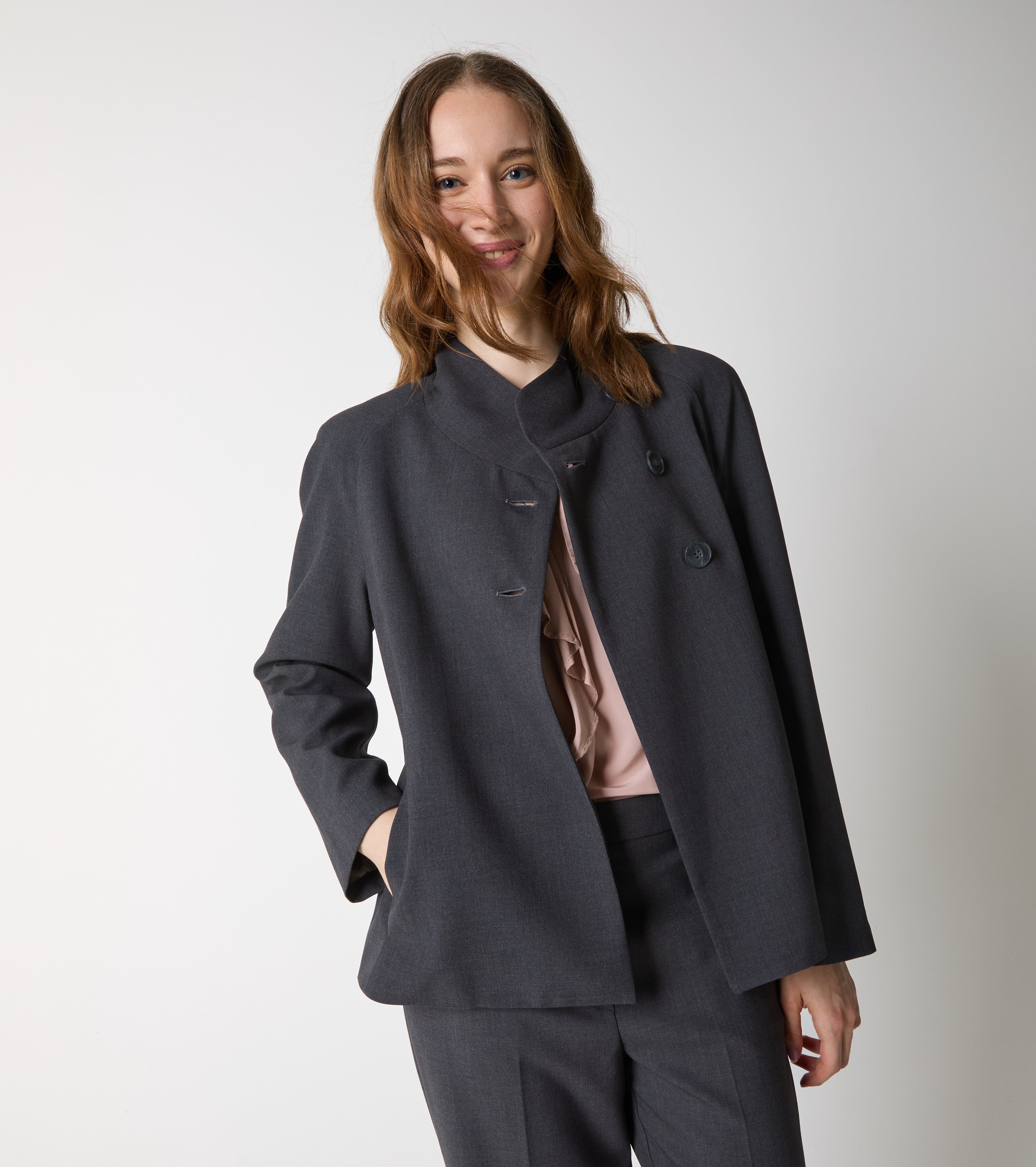 Scegli la giacca doppiopetto realizzata in misto viscosa stretch.
