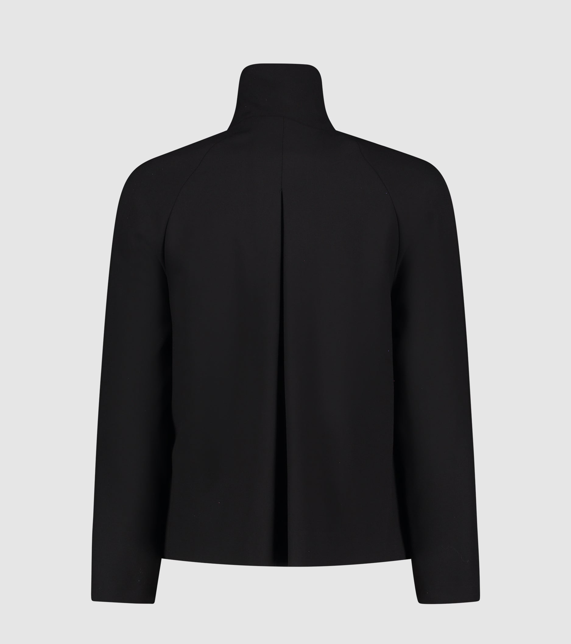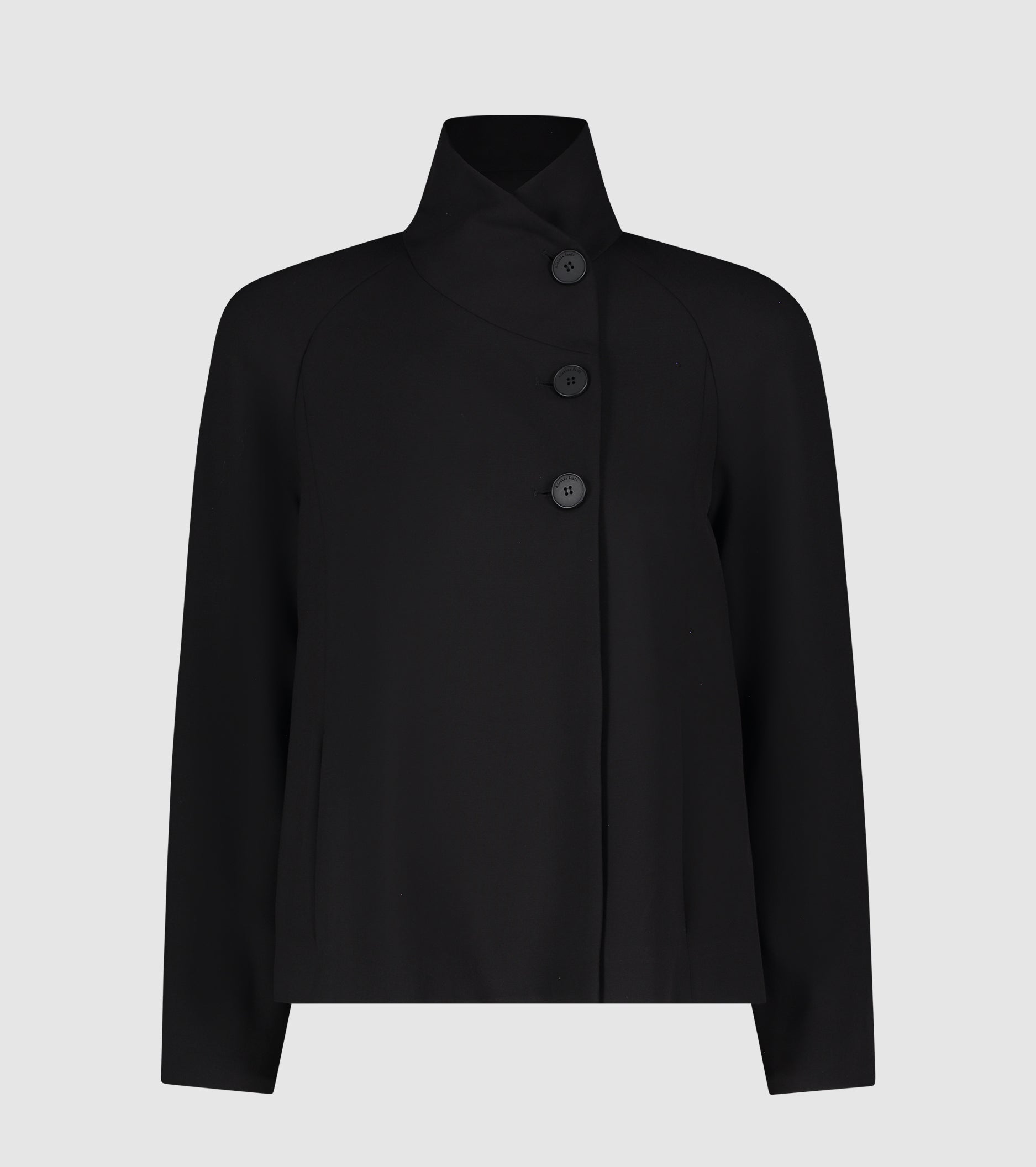 Моделът е леко разкроен, с висока яка, странични джобове и рагланови ръкави. Кройката е съобразена с минималистичния шик.