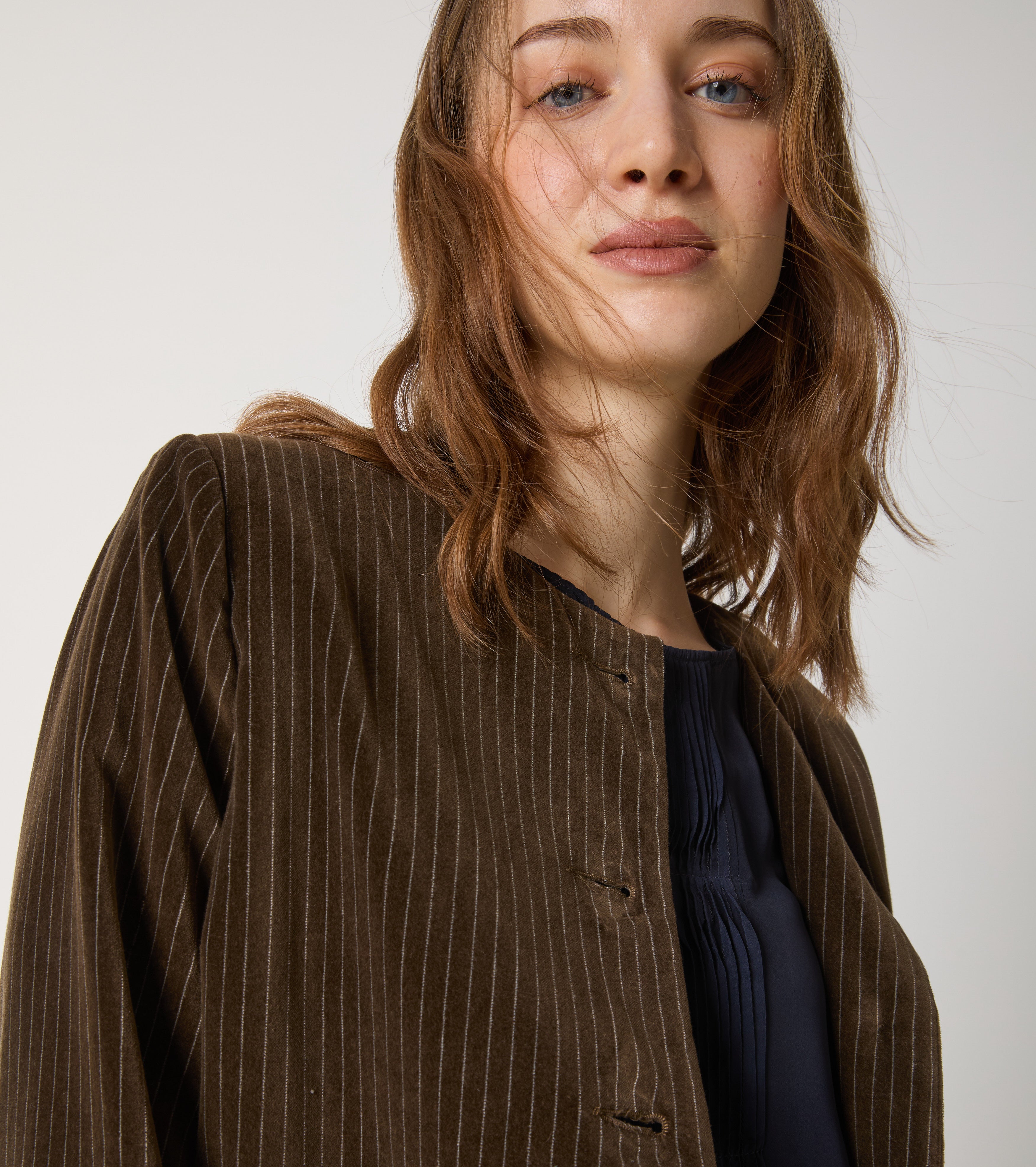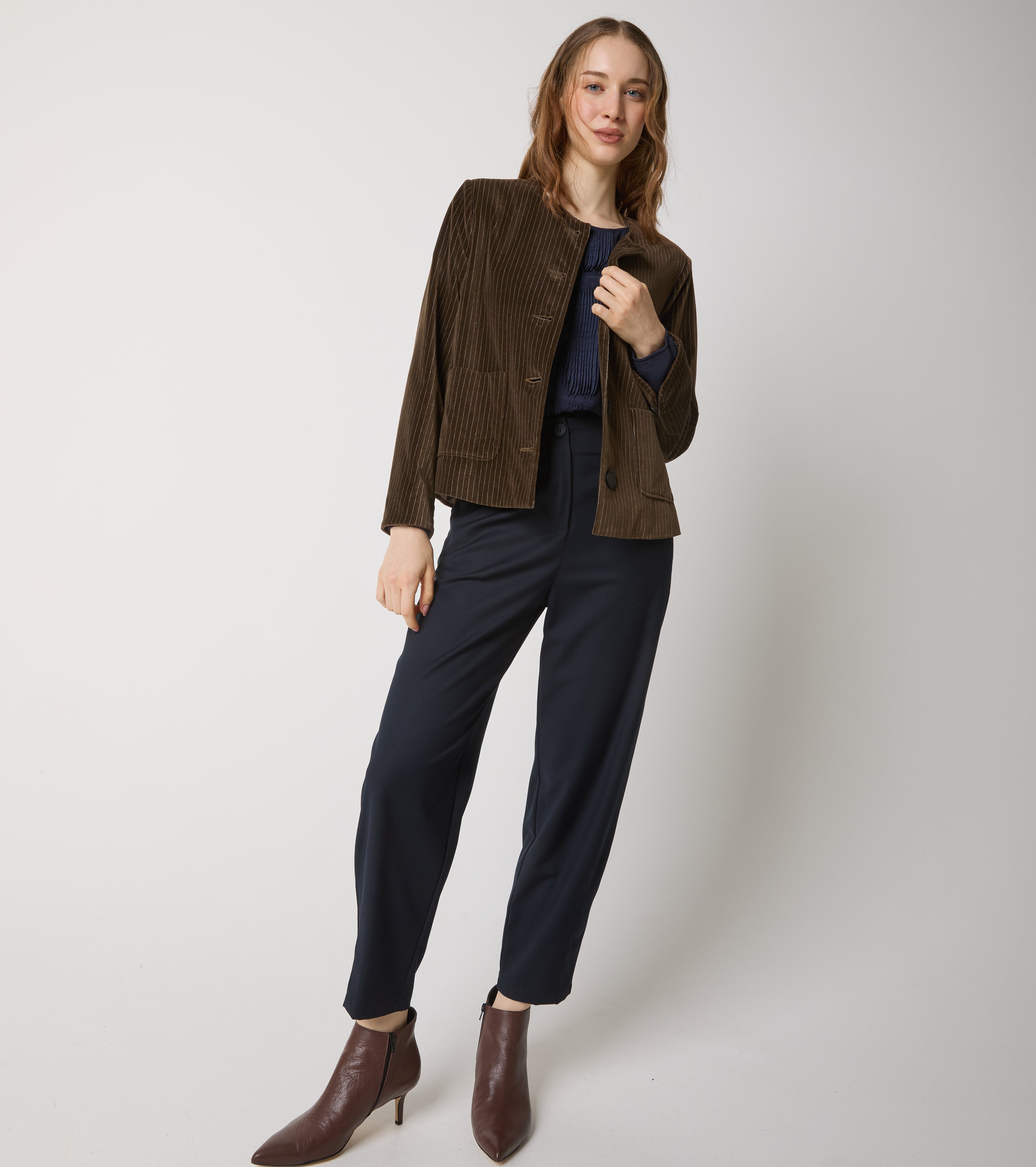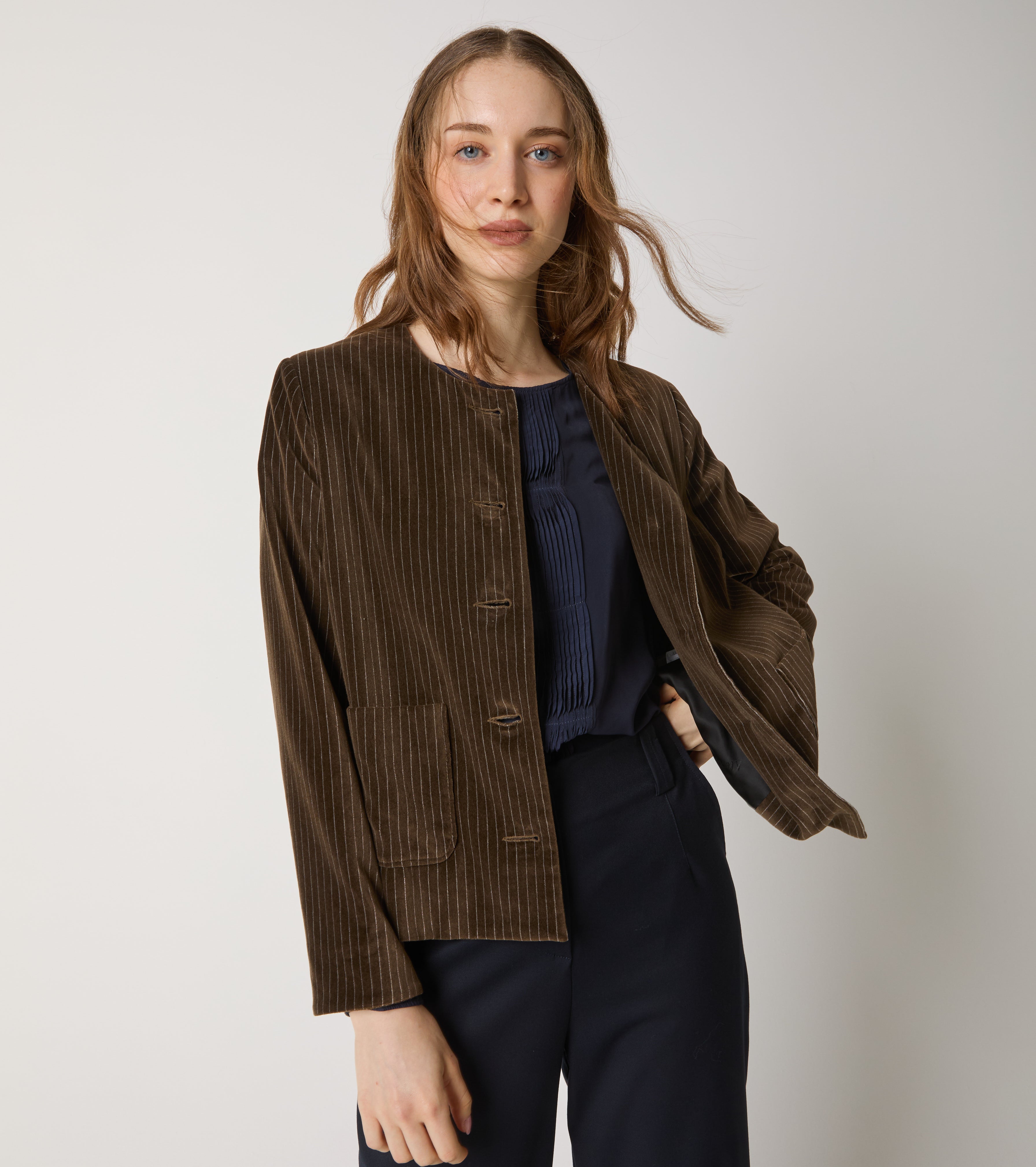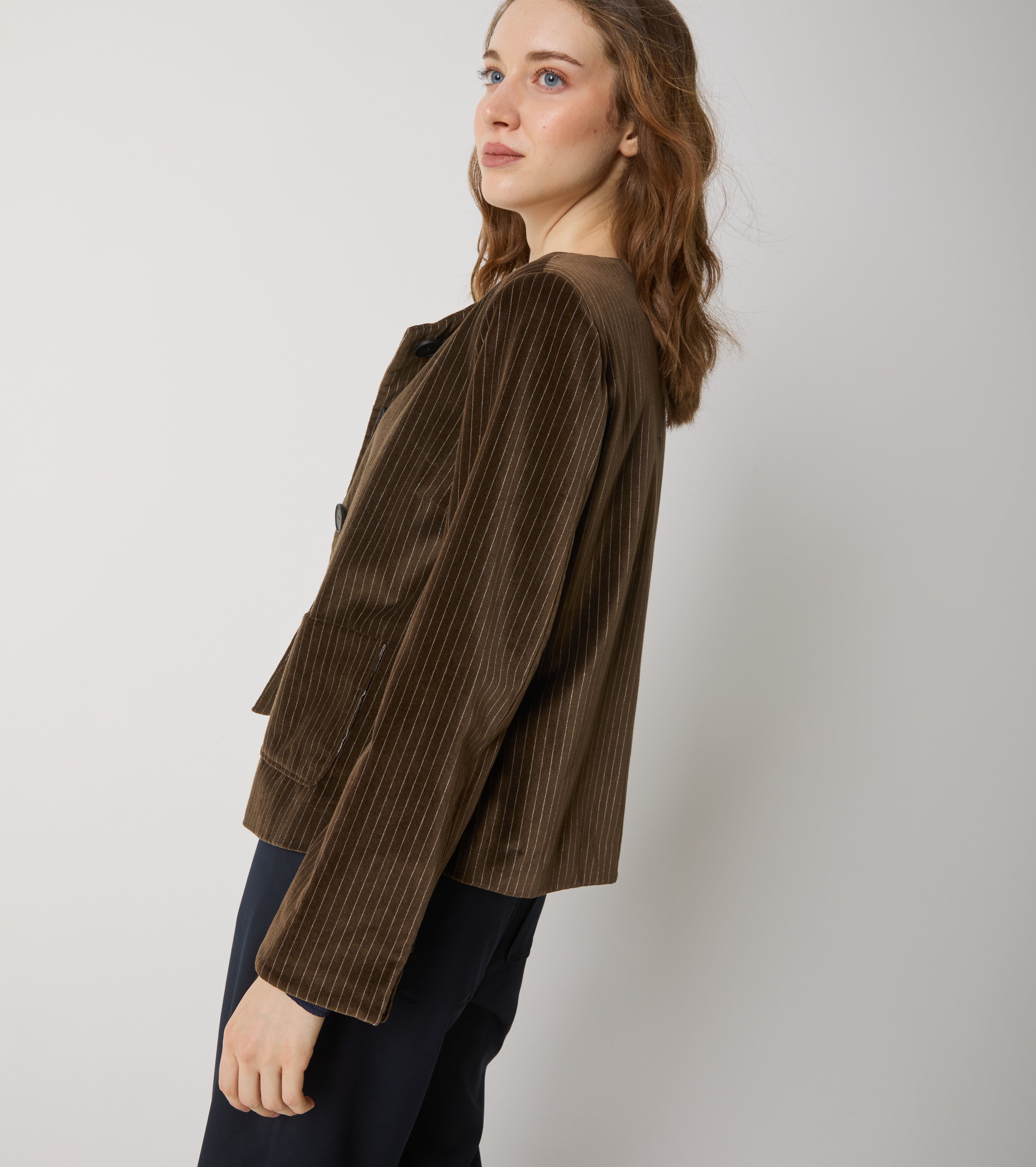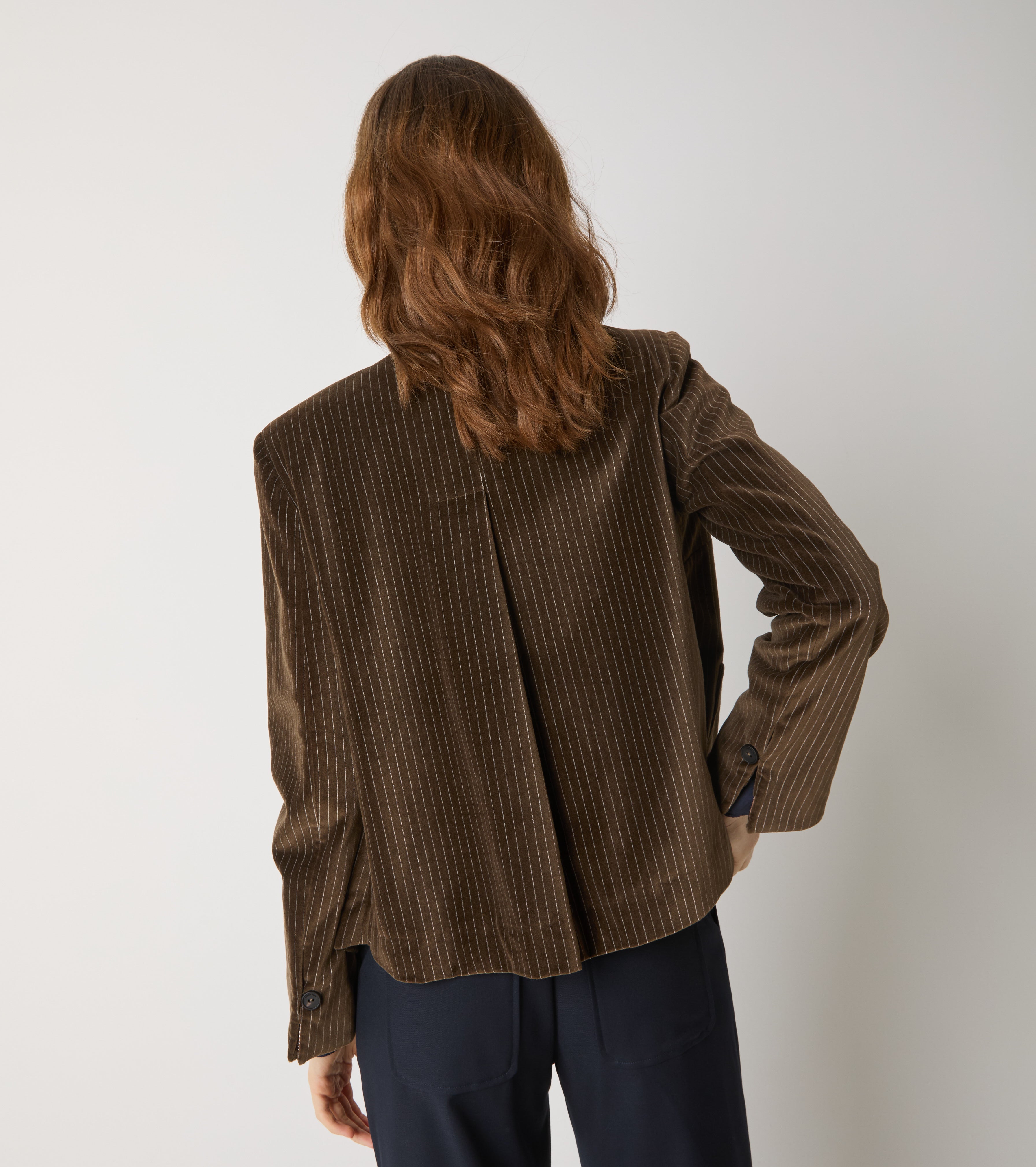 Scegli la giacca realizzata in velluto di misto cotone con motivo gessato.