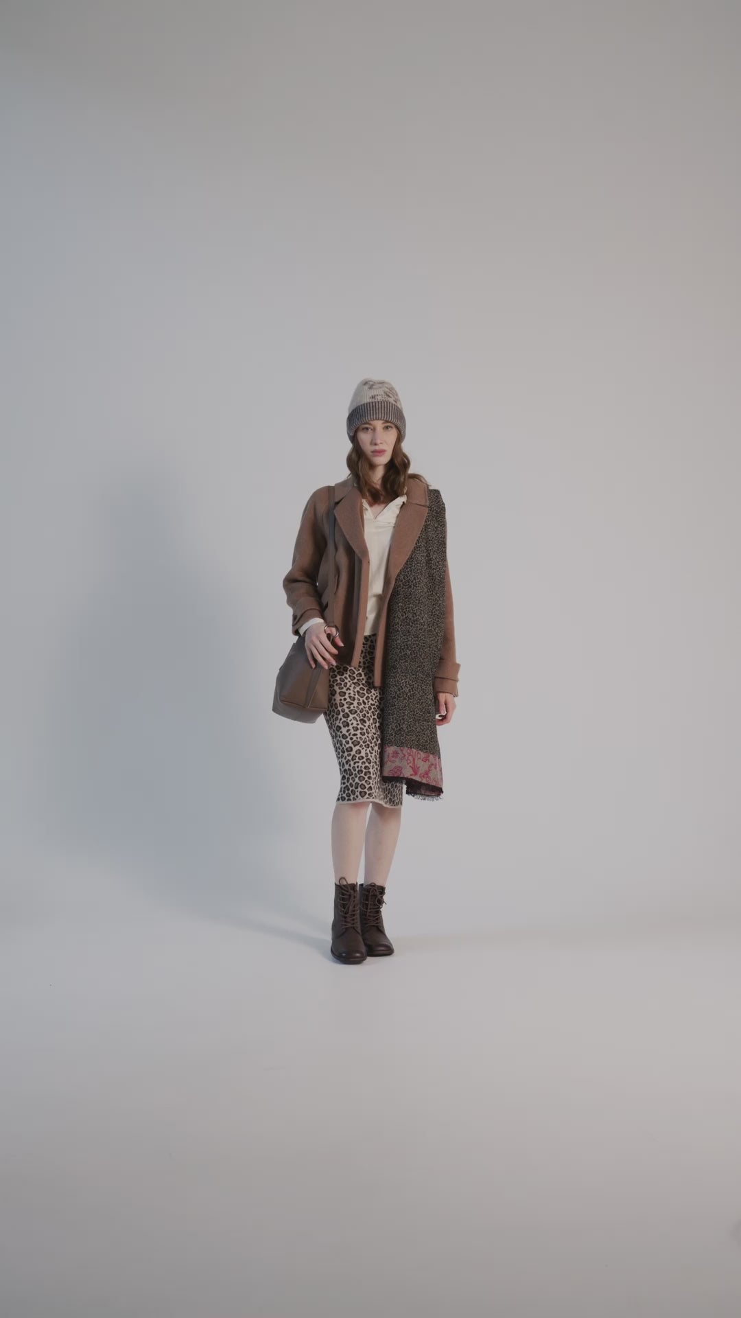 Scegli la gonna a tubino realizzata in morbida maglia di cotone e lana stretch con motivo animalier jacquard all over.