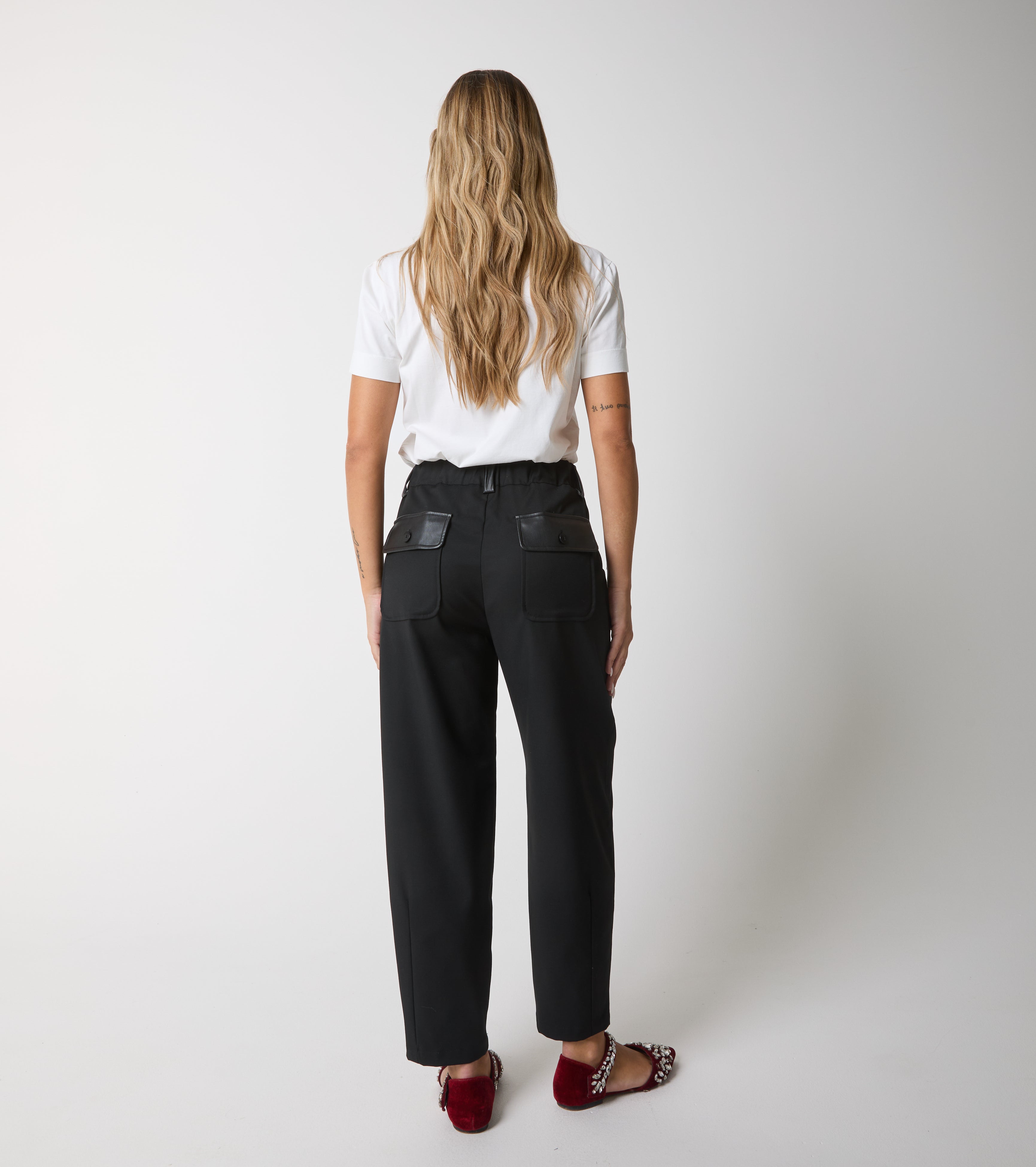 Il modello dalla linea dritta e cropped presenta piega cucita, tasche sui fianchi e sul retro. Per un’eleganza disinvolta e moderna.