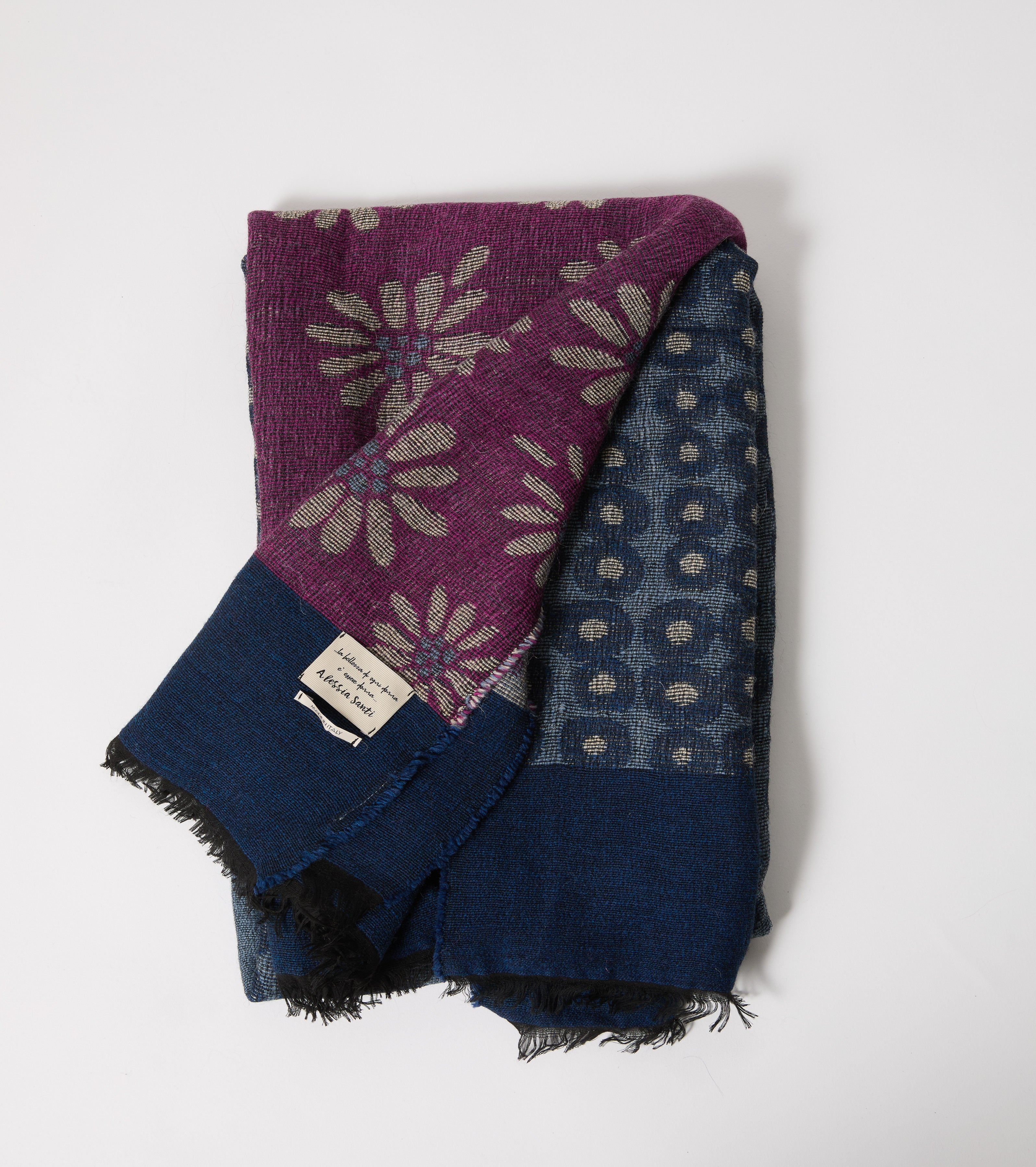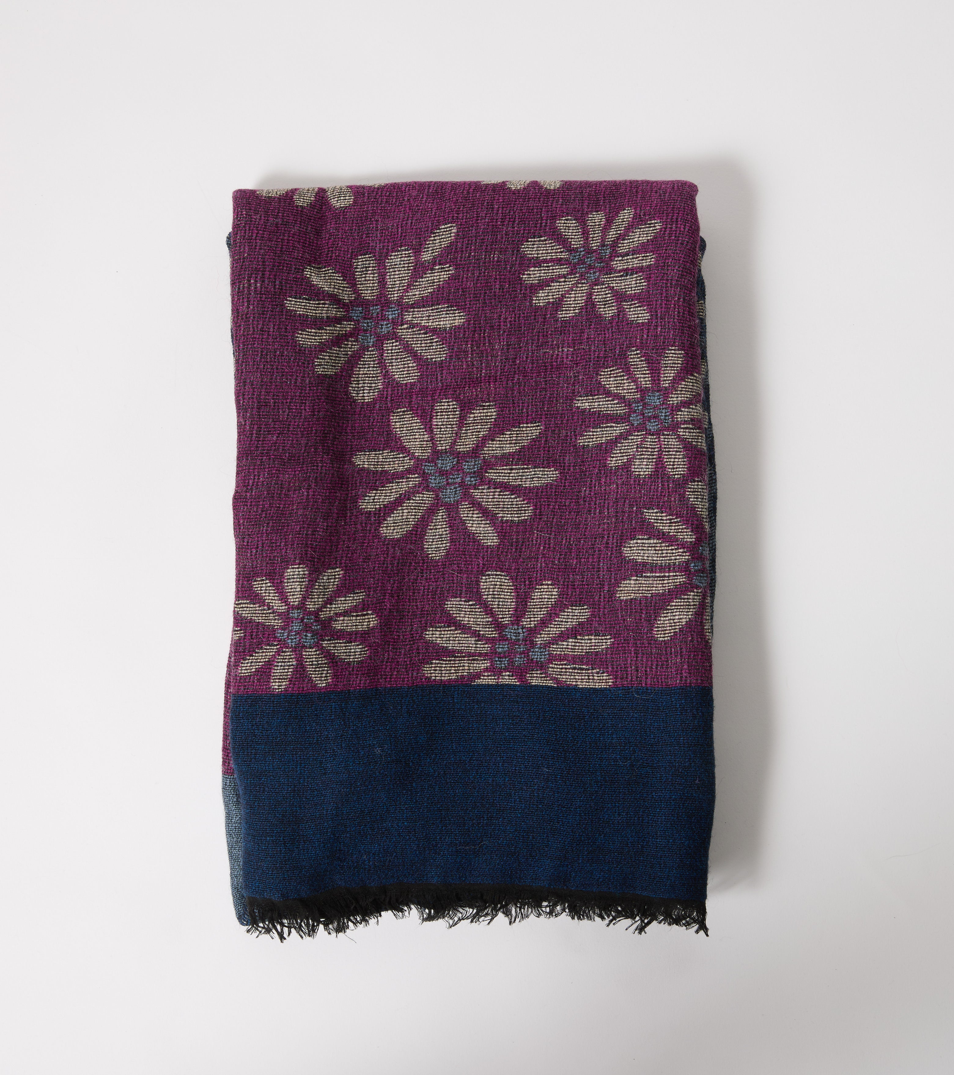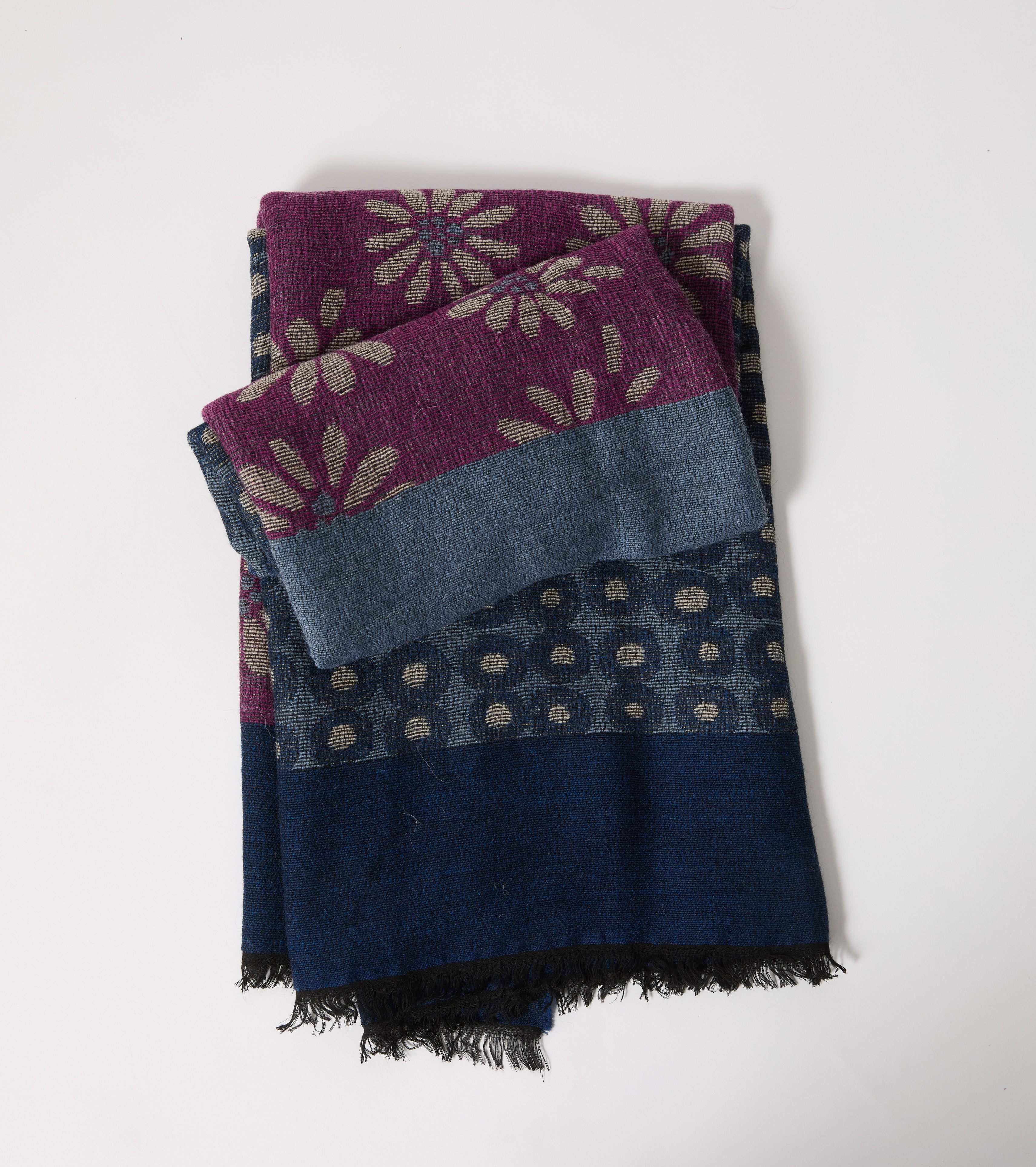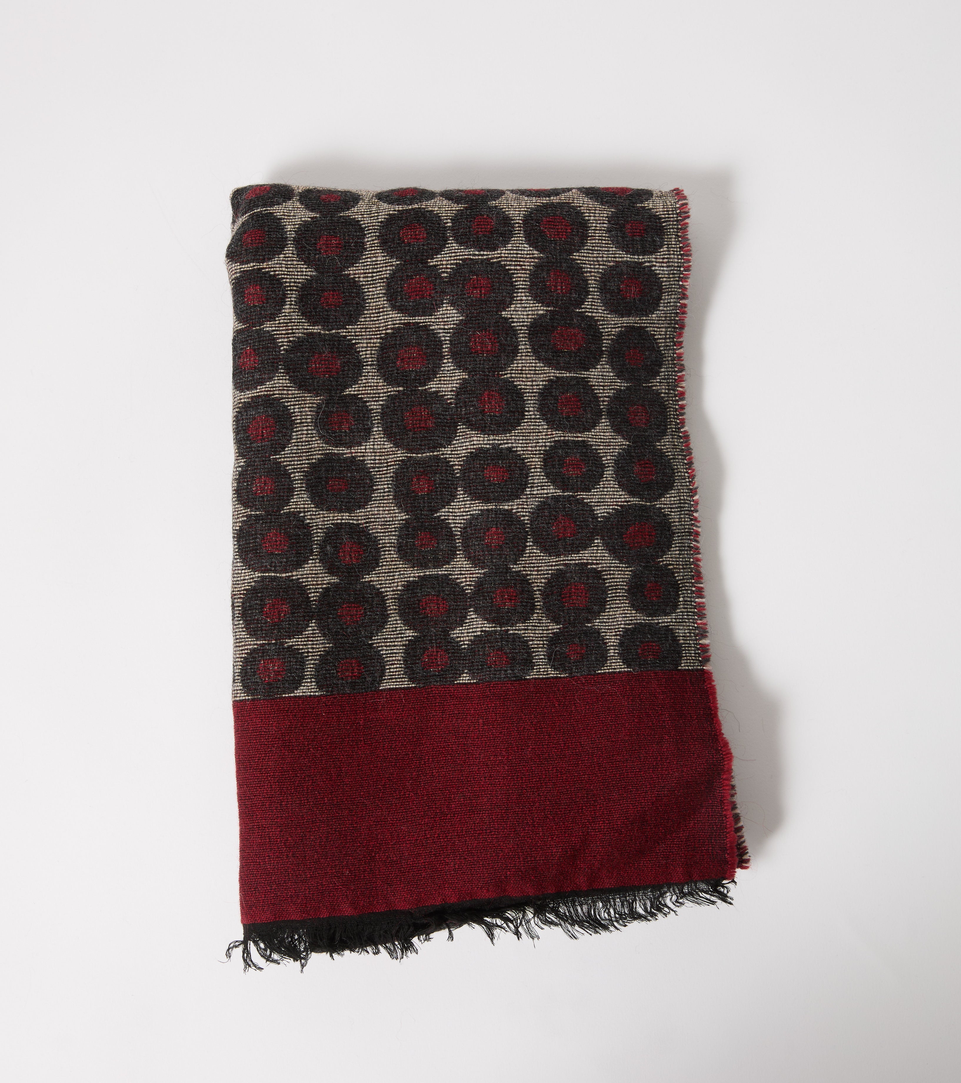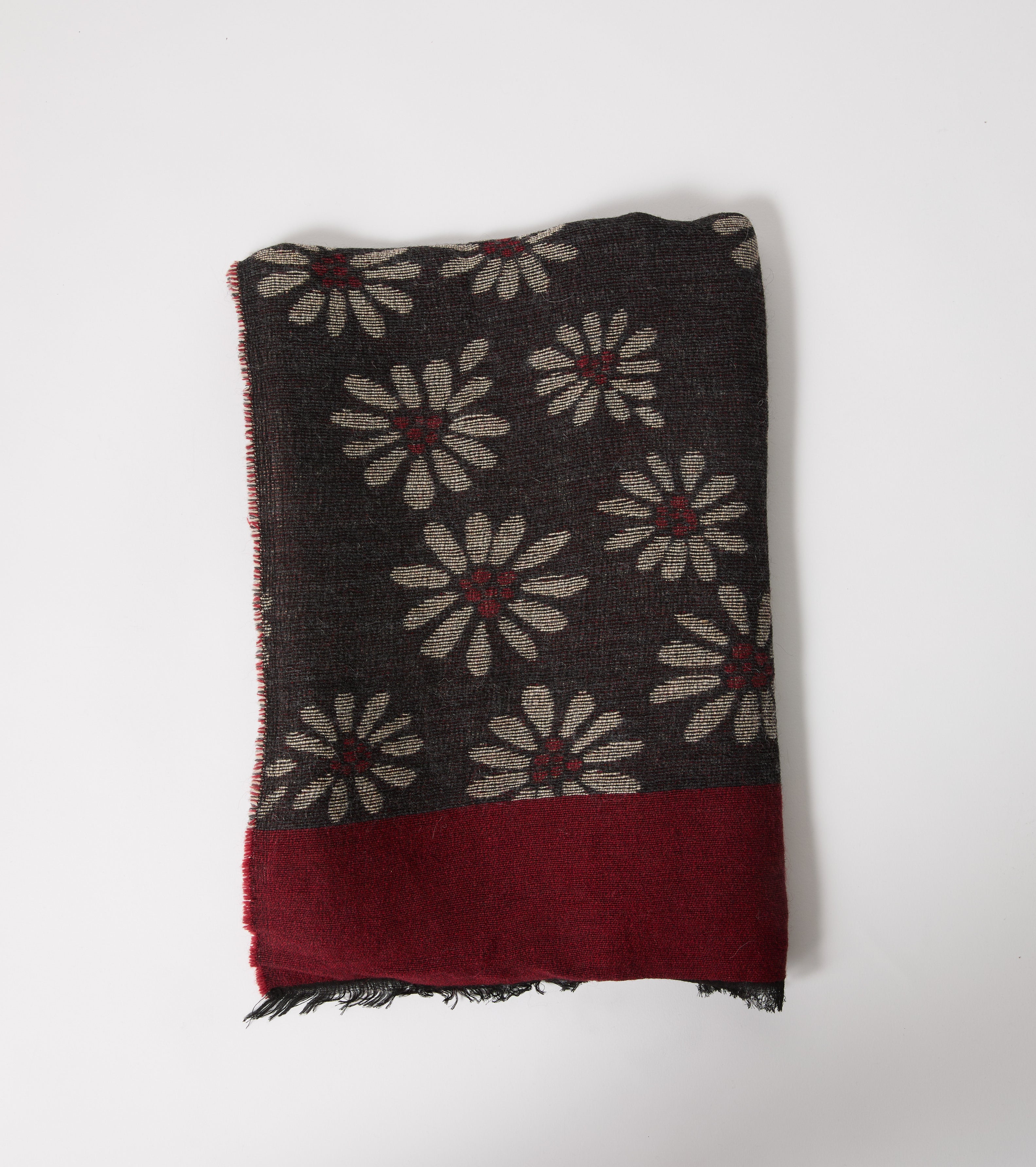Scegli la sciarpa realizzata in morbido filato di misto lana e alpaca con motivo floreale e a pois jacquard.