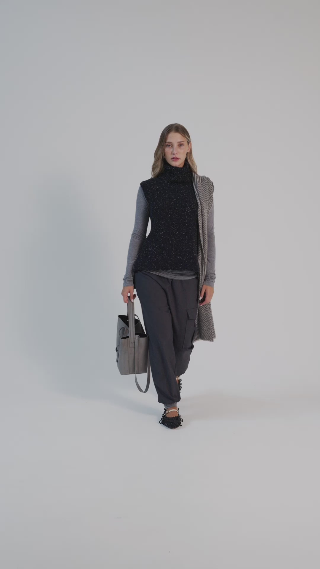 Scegli il top realizzato in maglia di misto lana con dettagli in lurex all over.