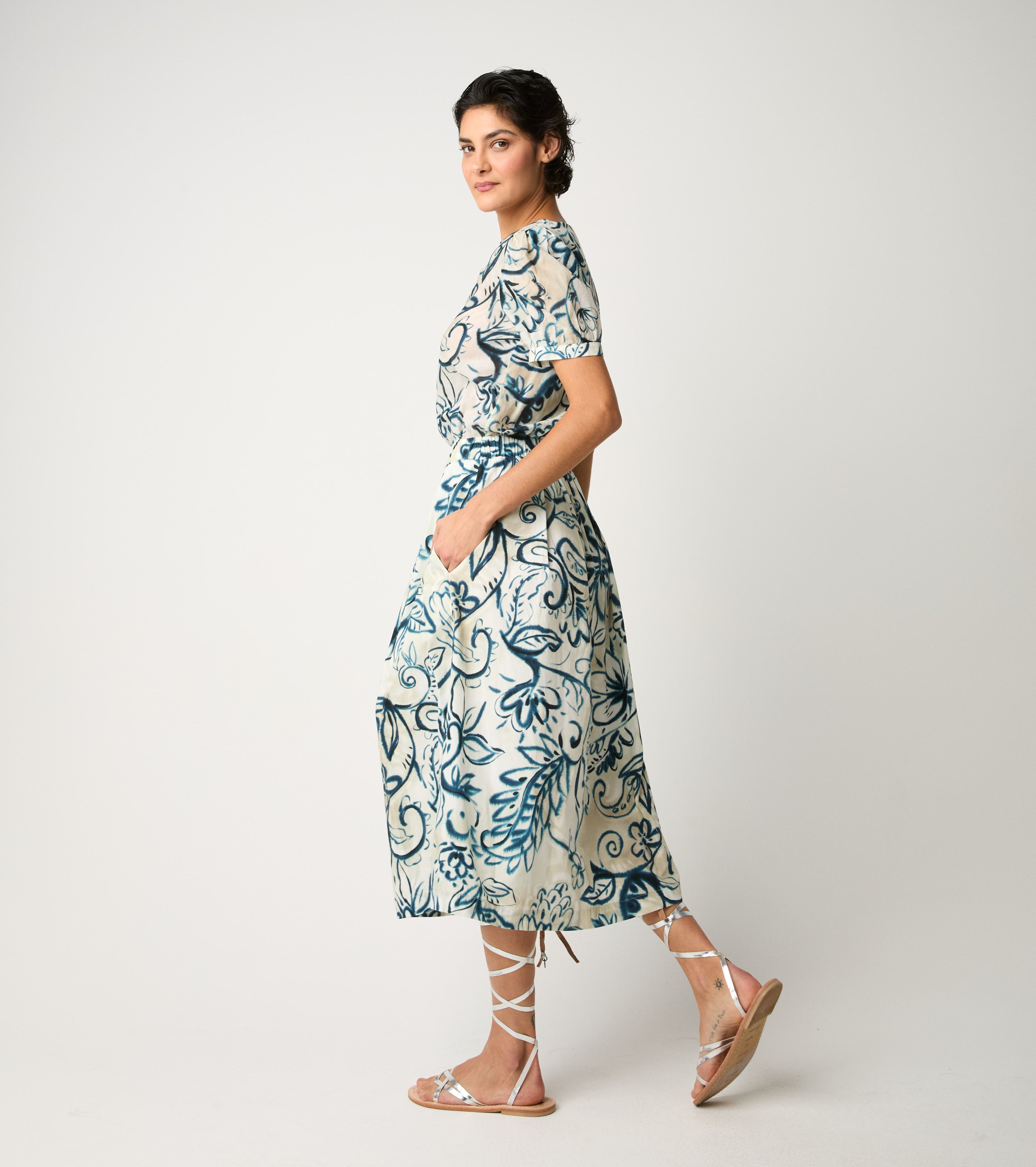 Scegli l'abito lungo realizzato in cotone e impreziosito da una stampa floreale all over.