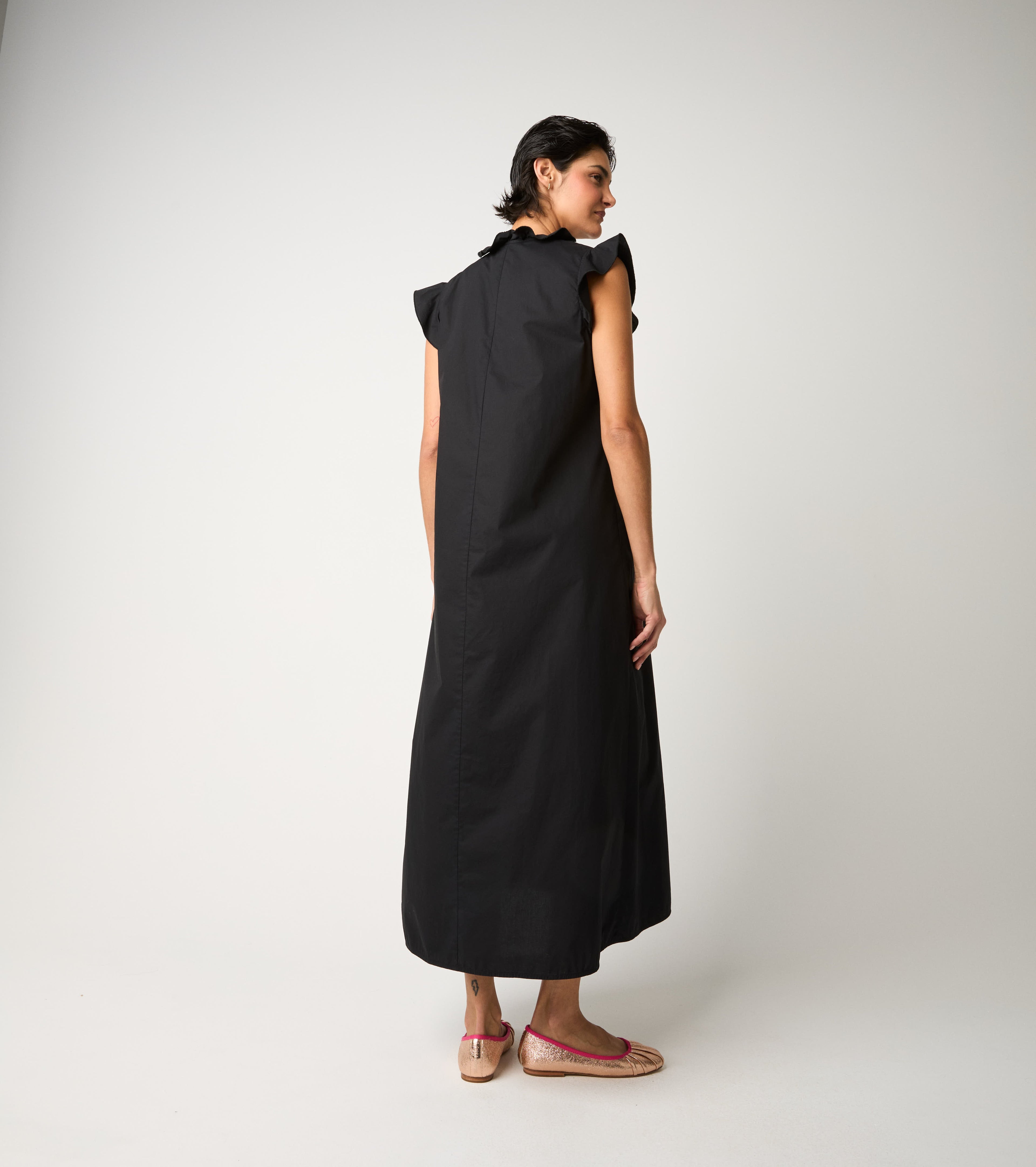 Scegli l'abito lungo realizzato in popeline di cotone dalla texture fluida e leggera.