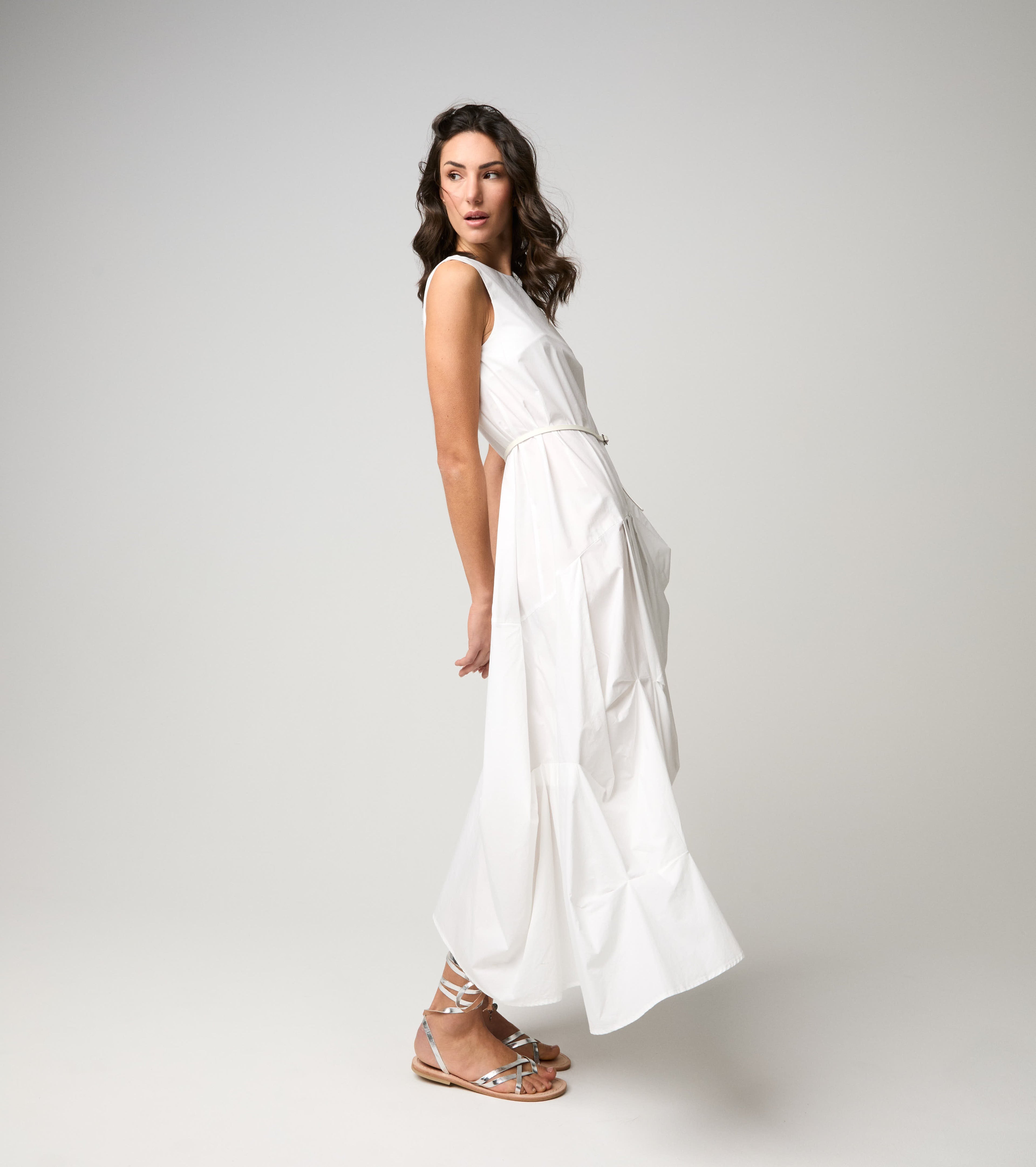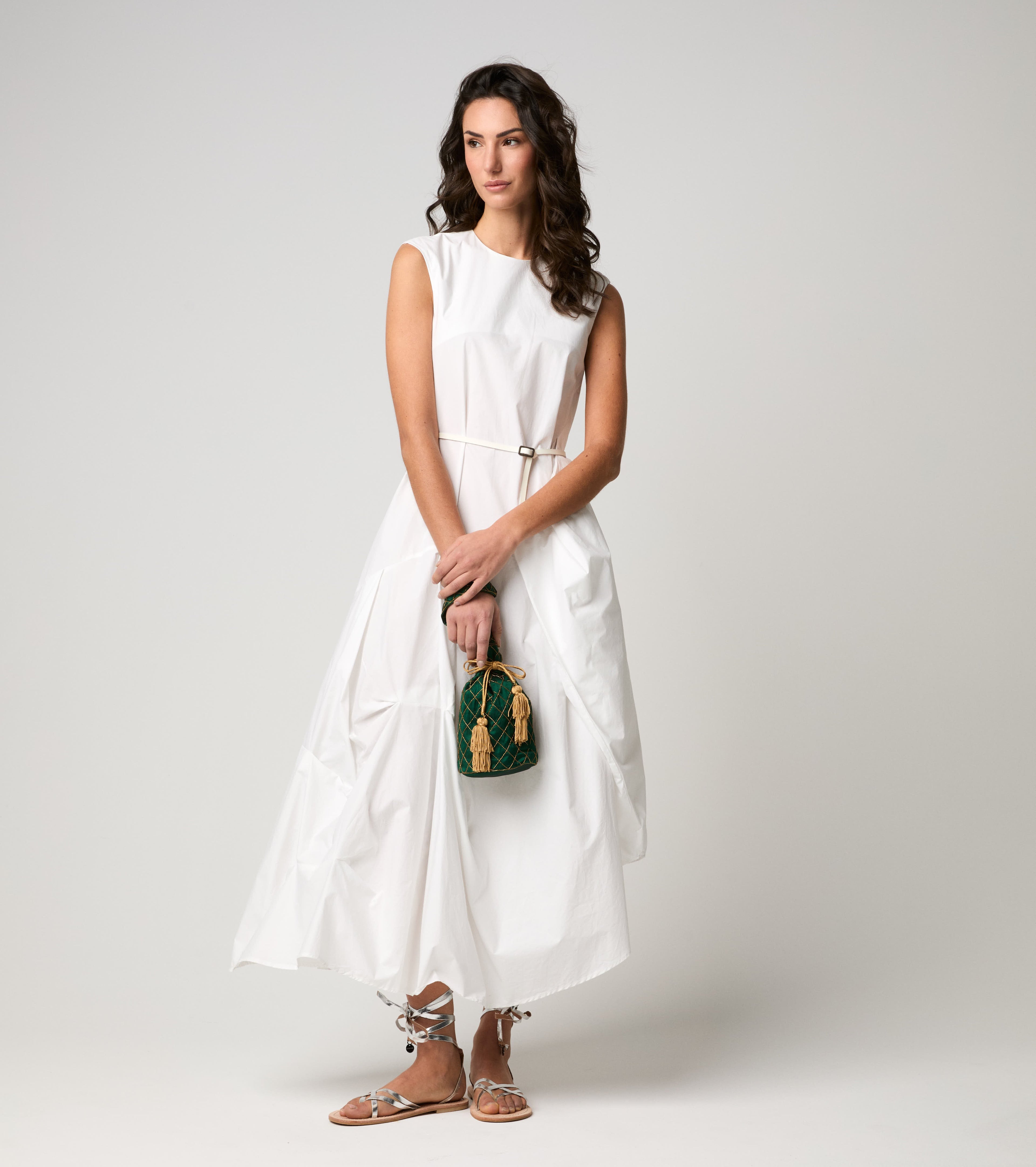 Scegli l'abito lungo con cintura coordinata che valorizza la silhouette.