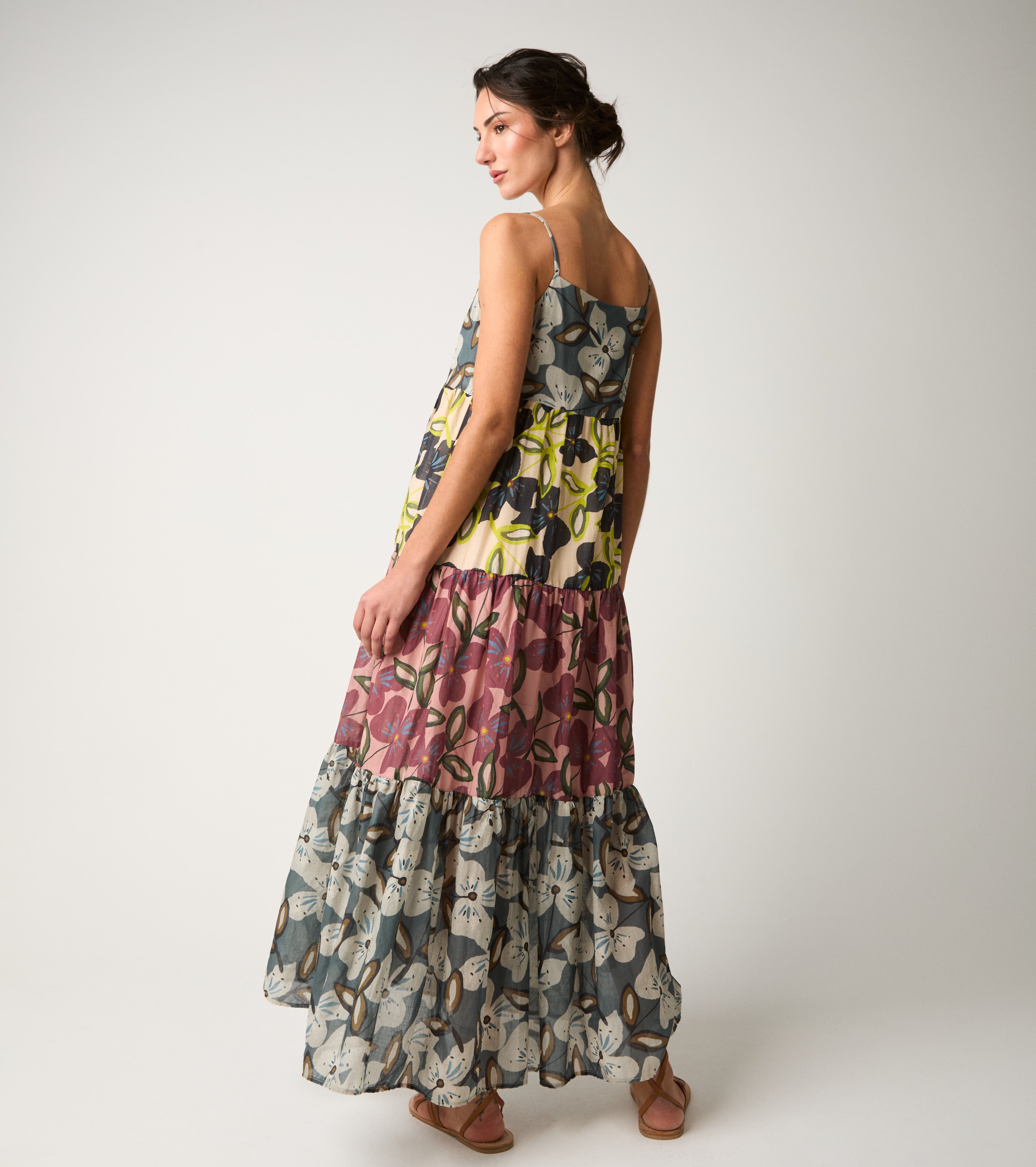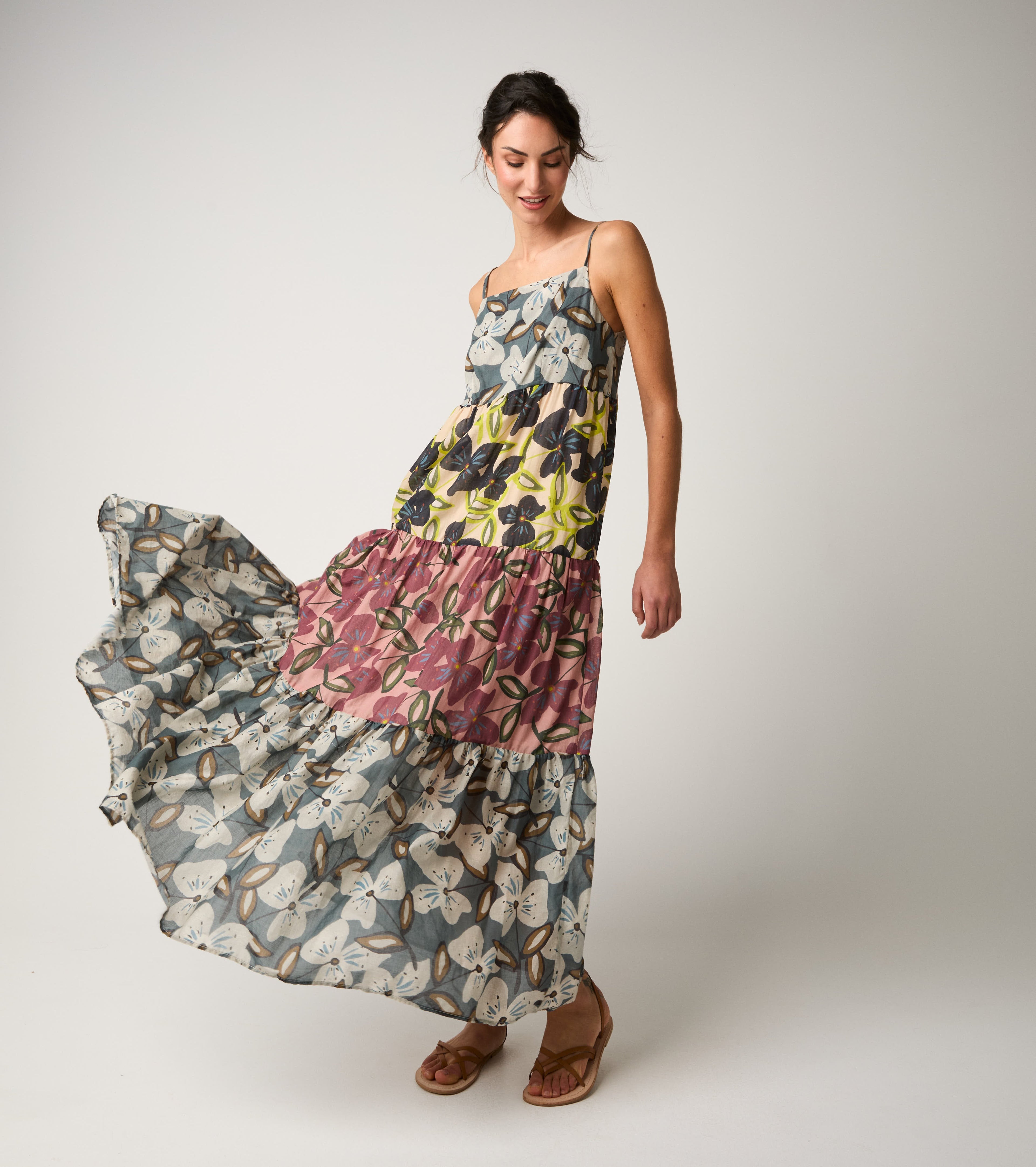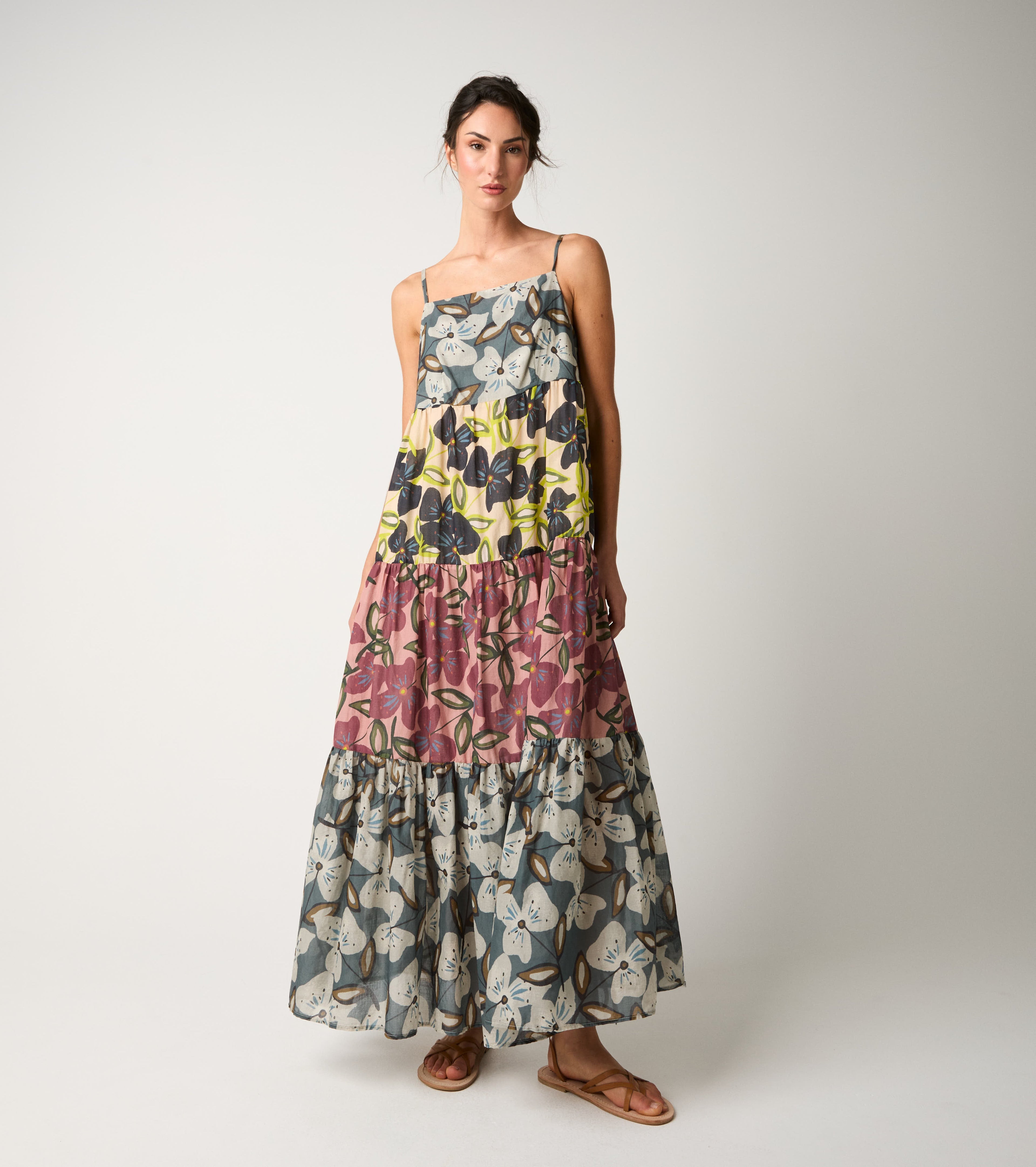 Abito lungo in cotone floreale fiori