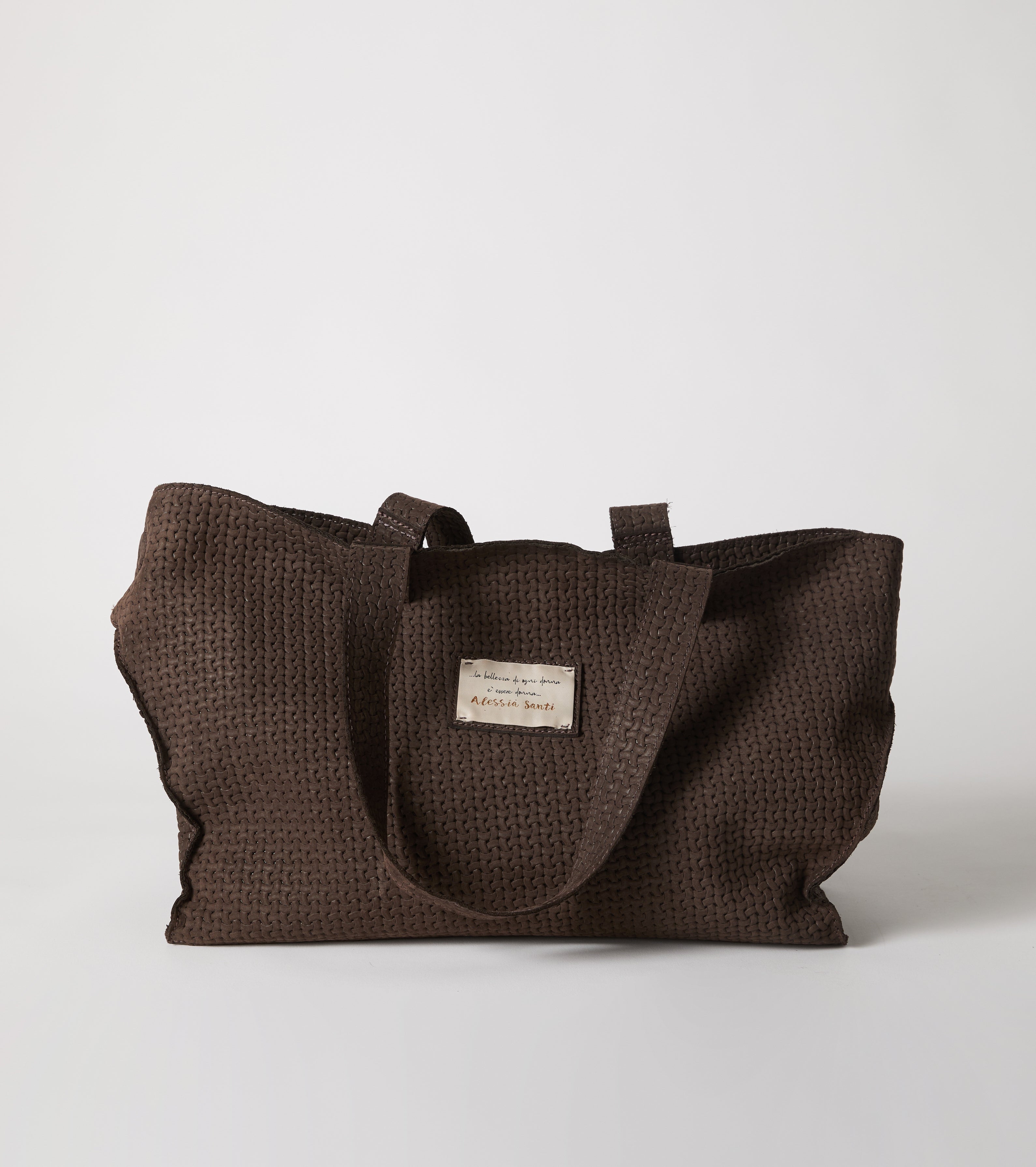 Vælg denne shoppingtaske i læder med mikro-ternet mønster og patch foran.