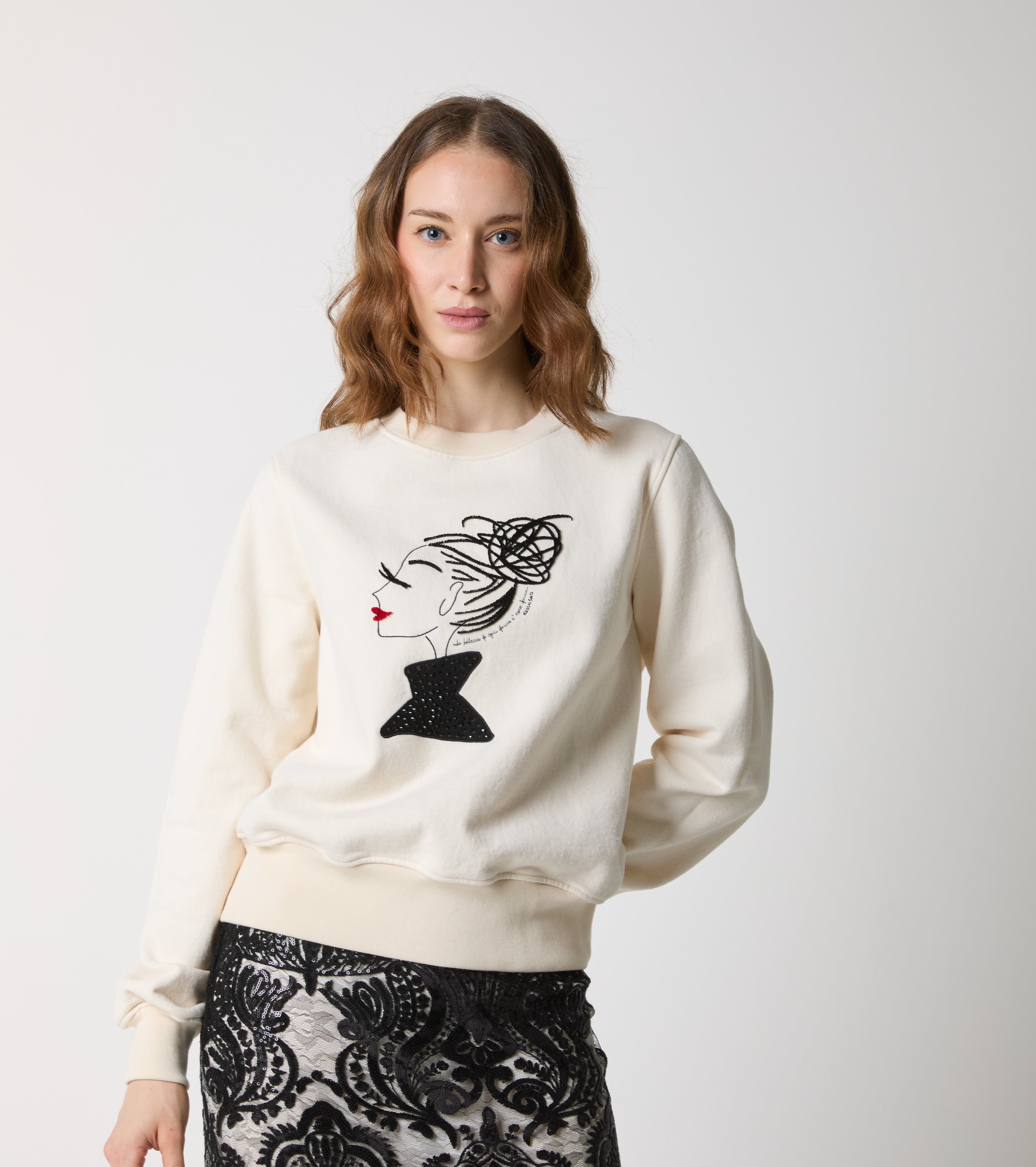 Vælg denne sweatshirt i blødt økologisk bomuld med et sensuelt grafisk mønster, der er pyntet med rhinsten og broderi.