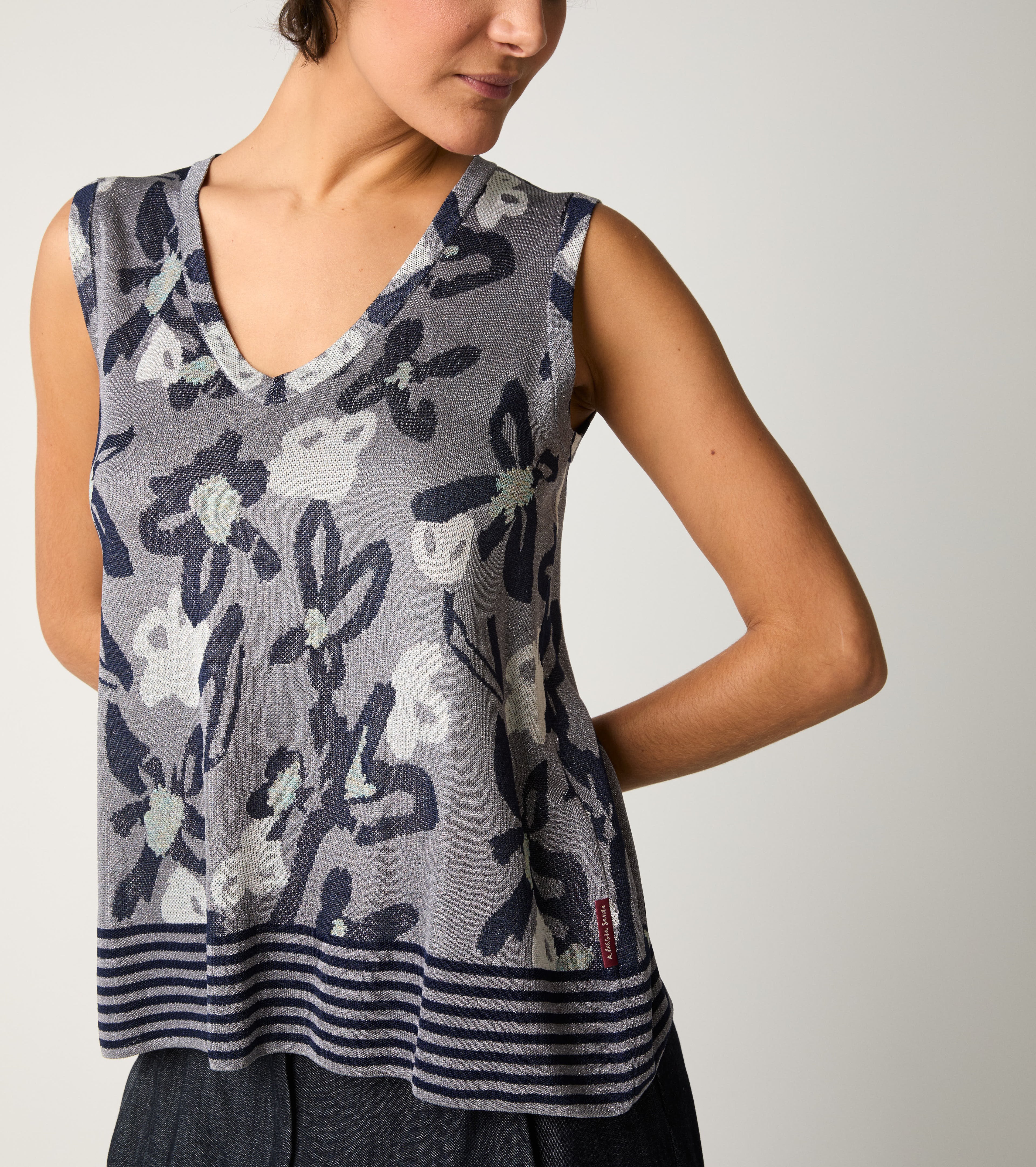 Top jacquard con scollo a V silver