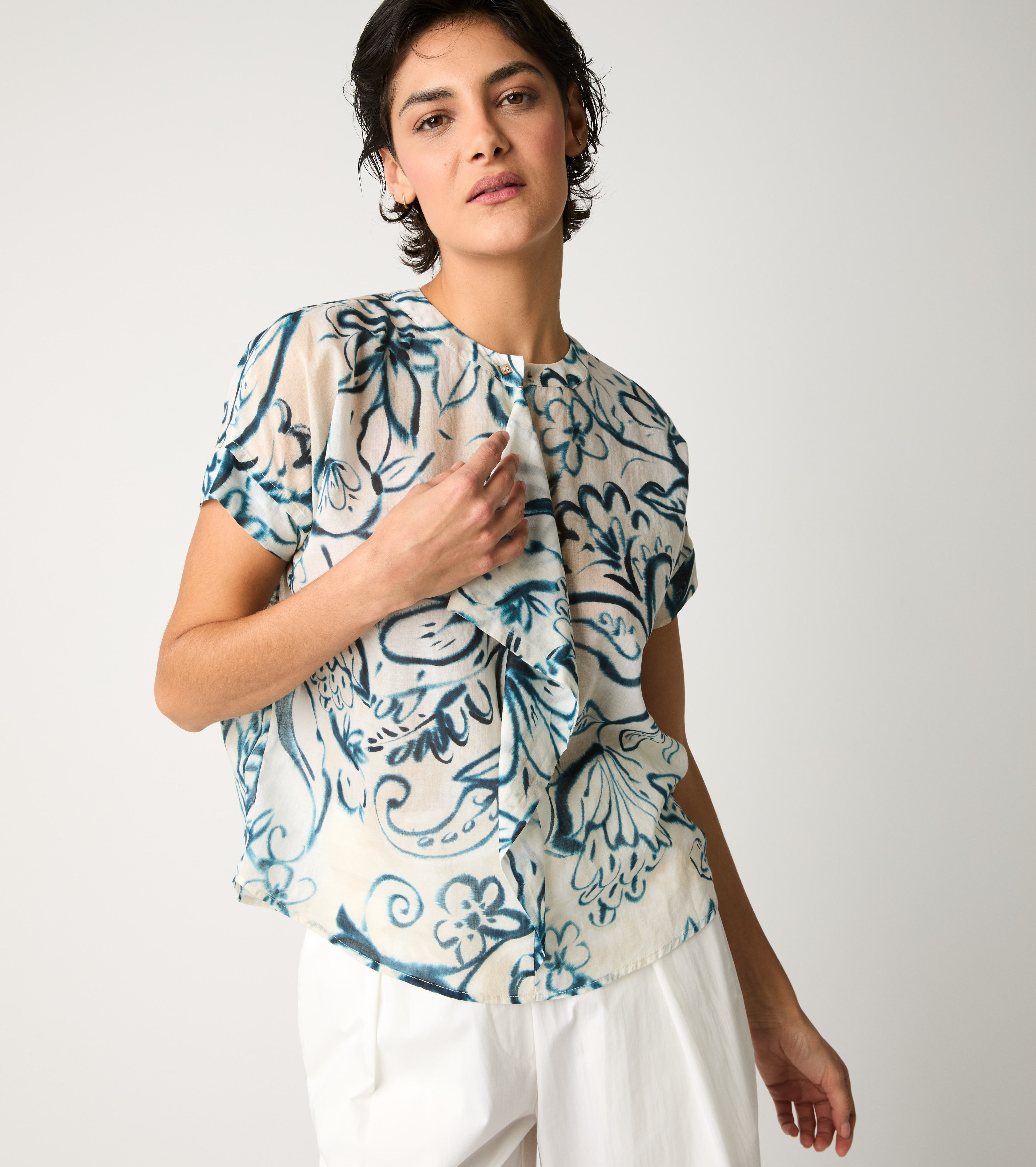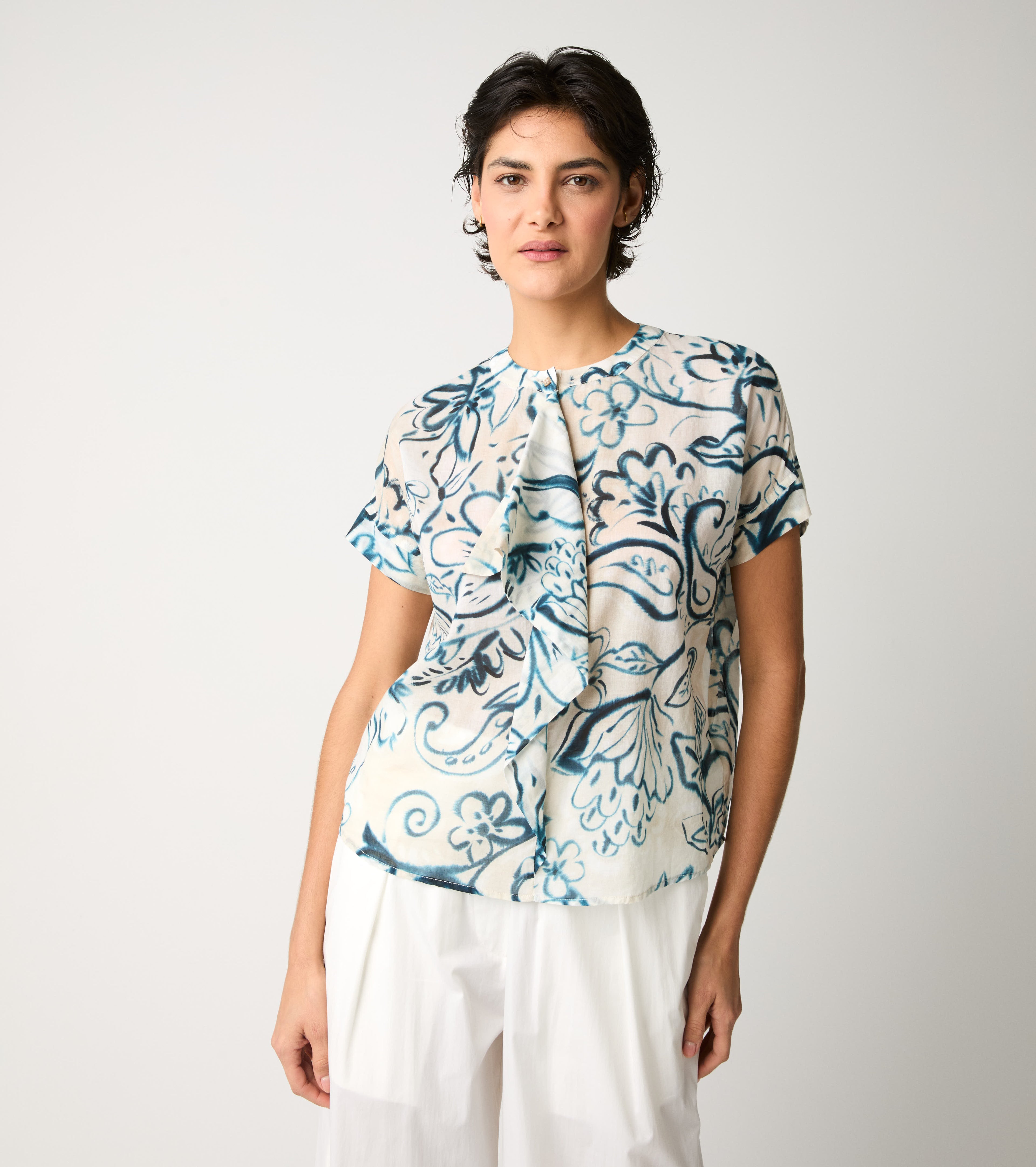 Choose this cotton blouse embellished with a floral print.