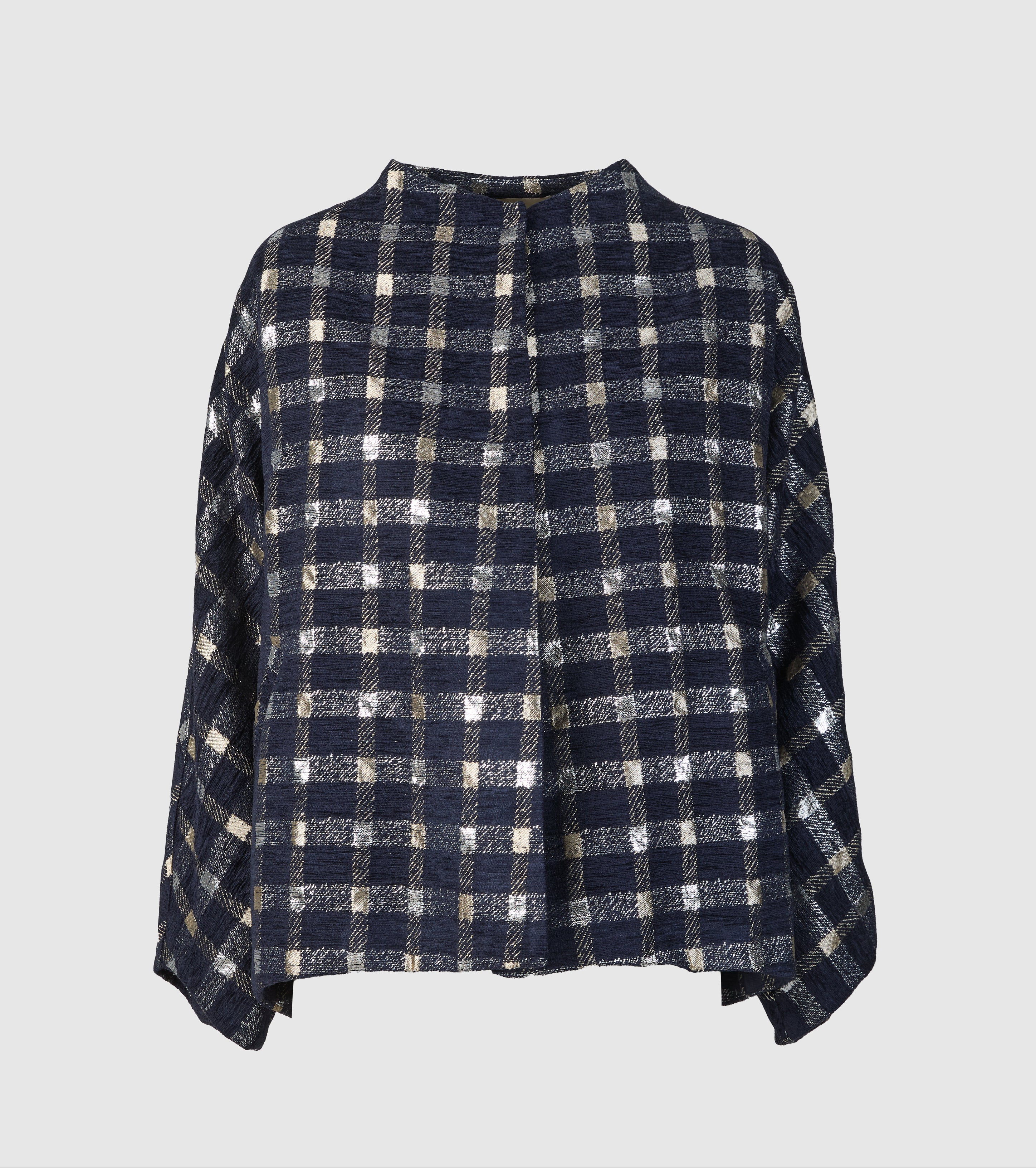 Giacca a Quadri con Fili Laminati e Maniche Ampie
