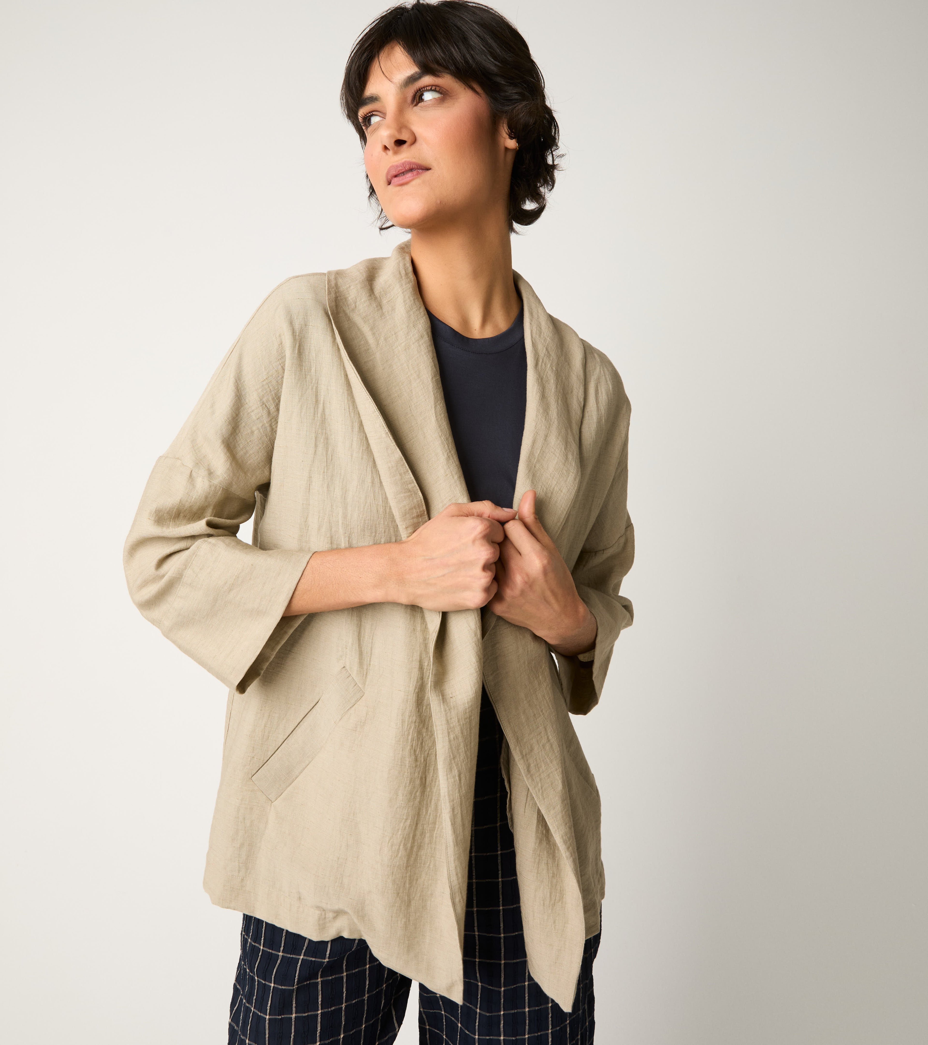 Choose this jacket made from a linen blend with a fluid, lightweight texture.