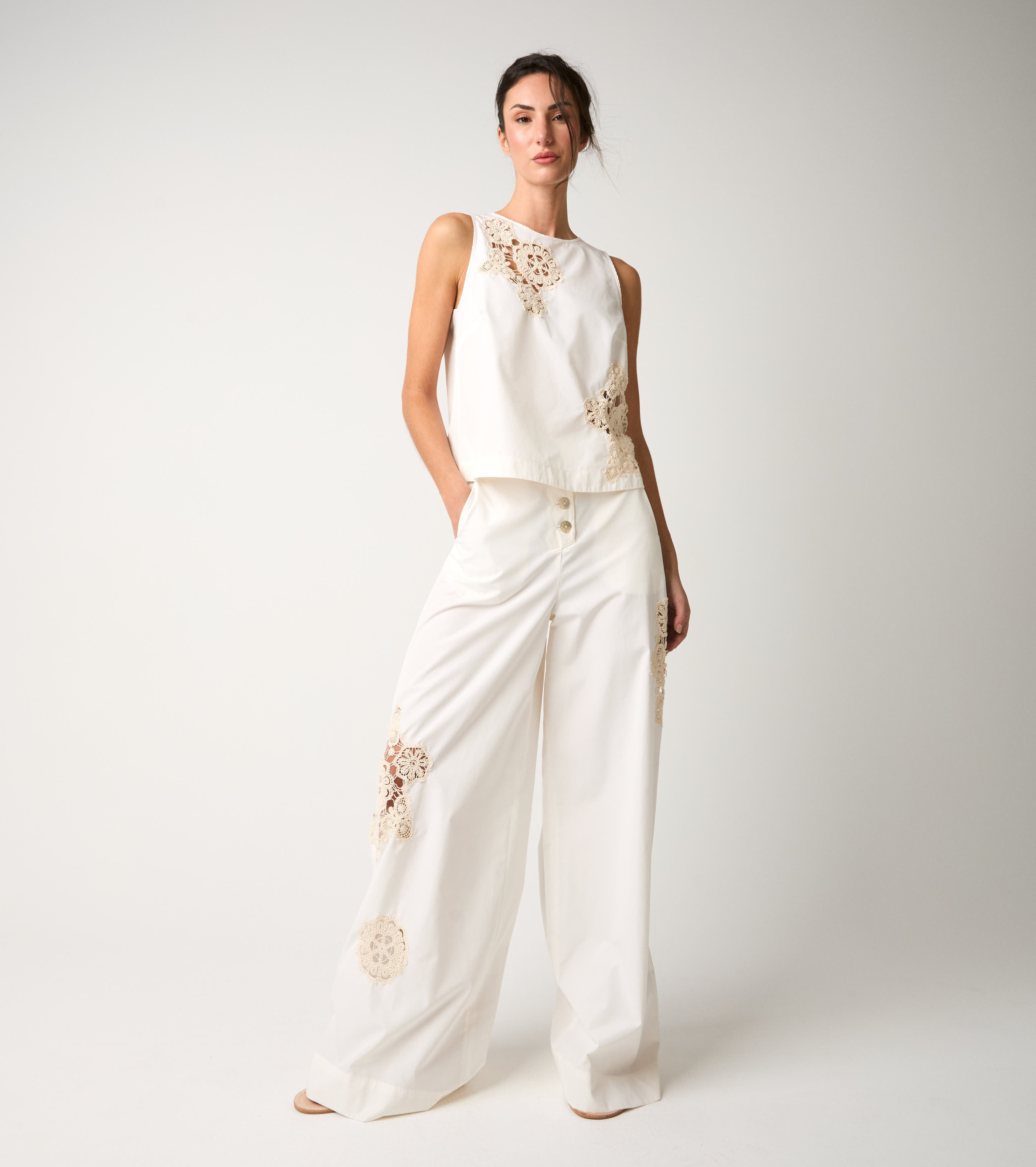Choose this cotton top embellished with romantic floral embroidery with a see-through effect.