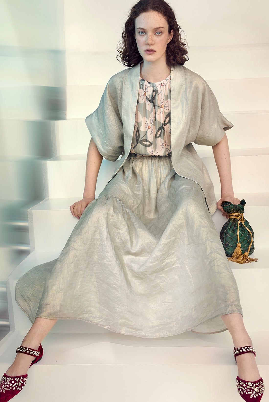 La borsa shopping in pelle si abbina perfettamente alla tuta in denim leggero e diventa sofisticata in ensemble con lo spolverino e i pantaloni coordinati. Aggiungi una sciarpa per completare il look.