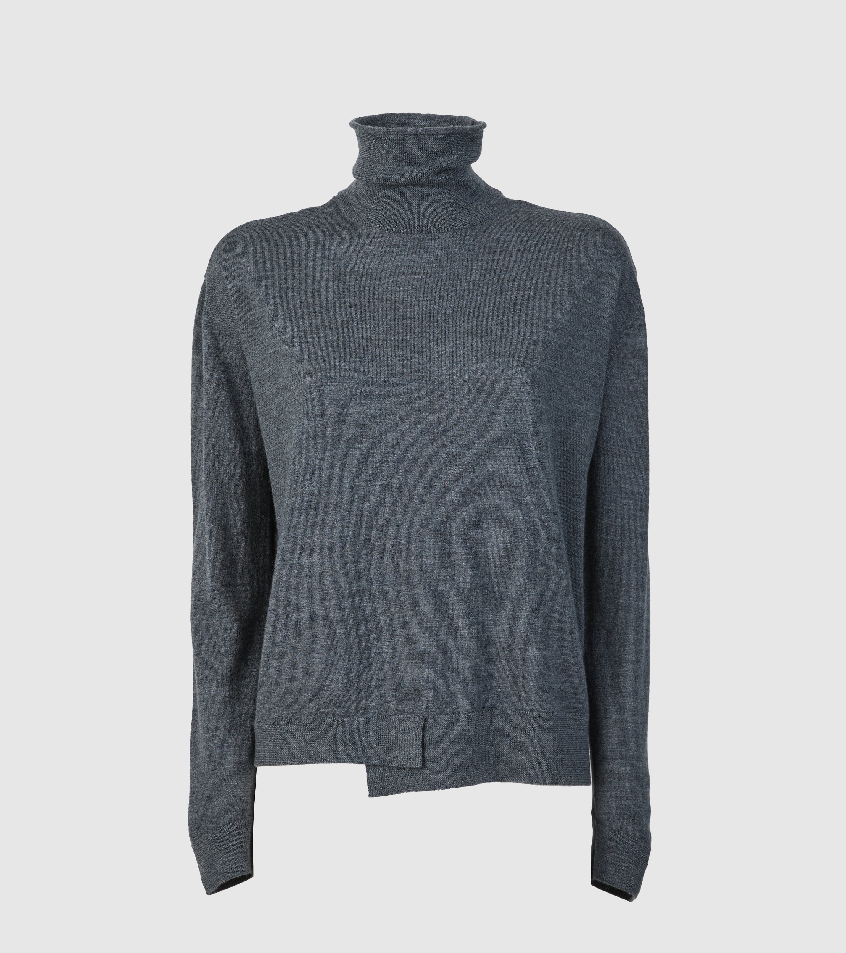 Il modello ha una vestibilità rilassata, collo dolcevita e fondo asimmetrico. Per un look contemporaneo che unisce comfort e stile.