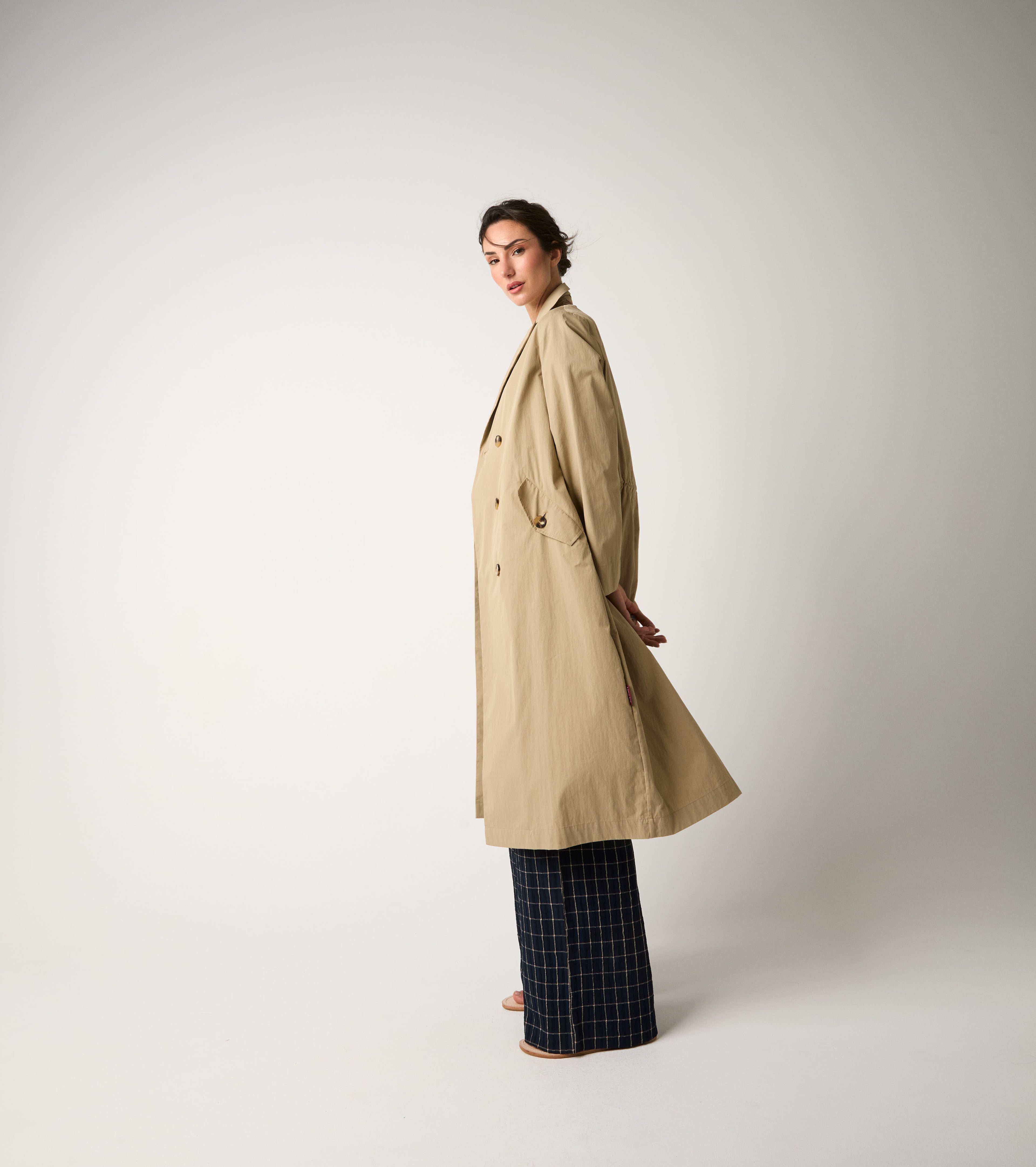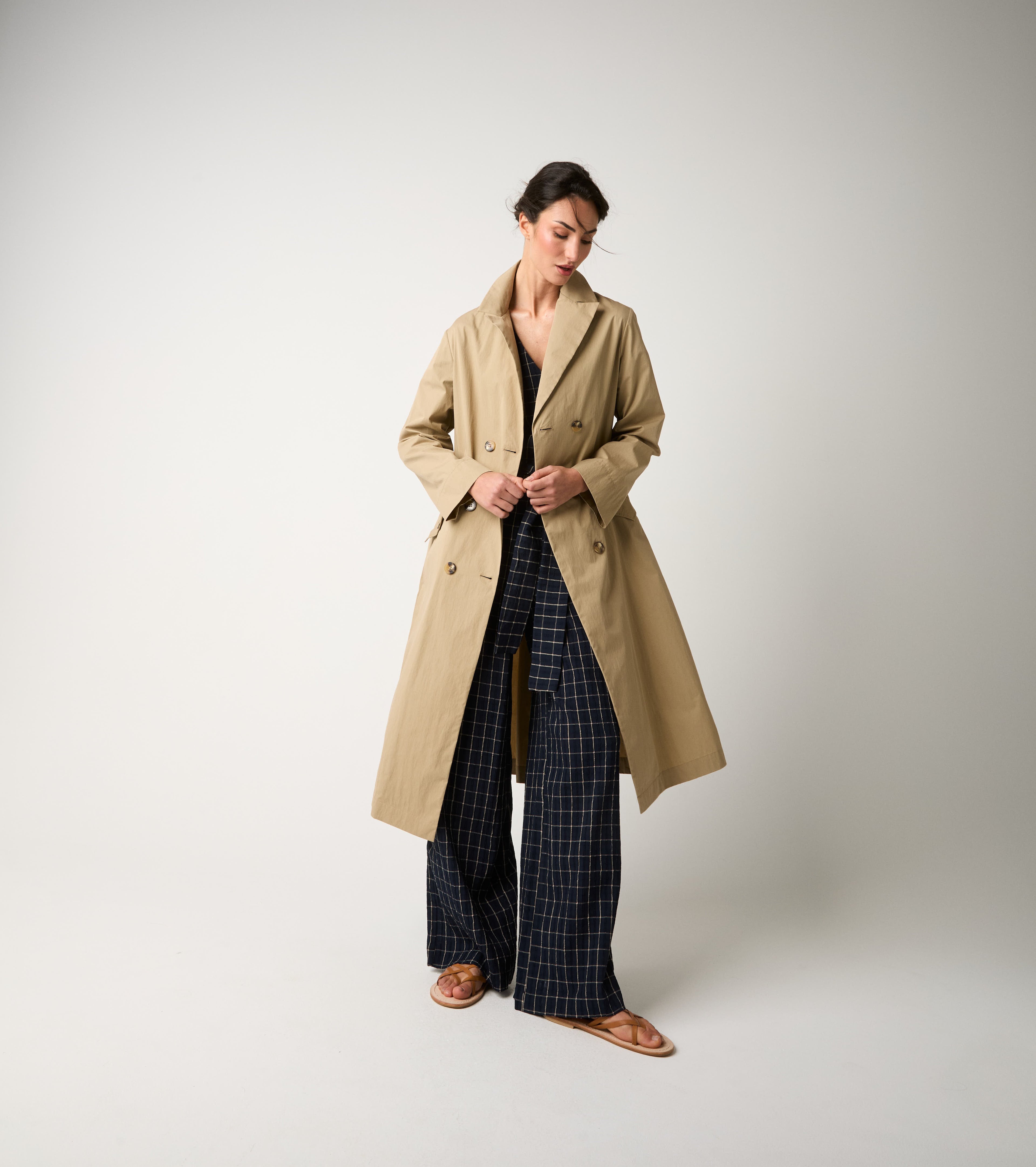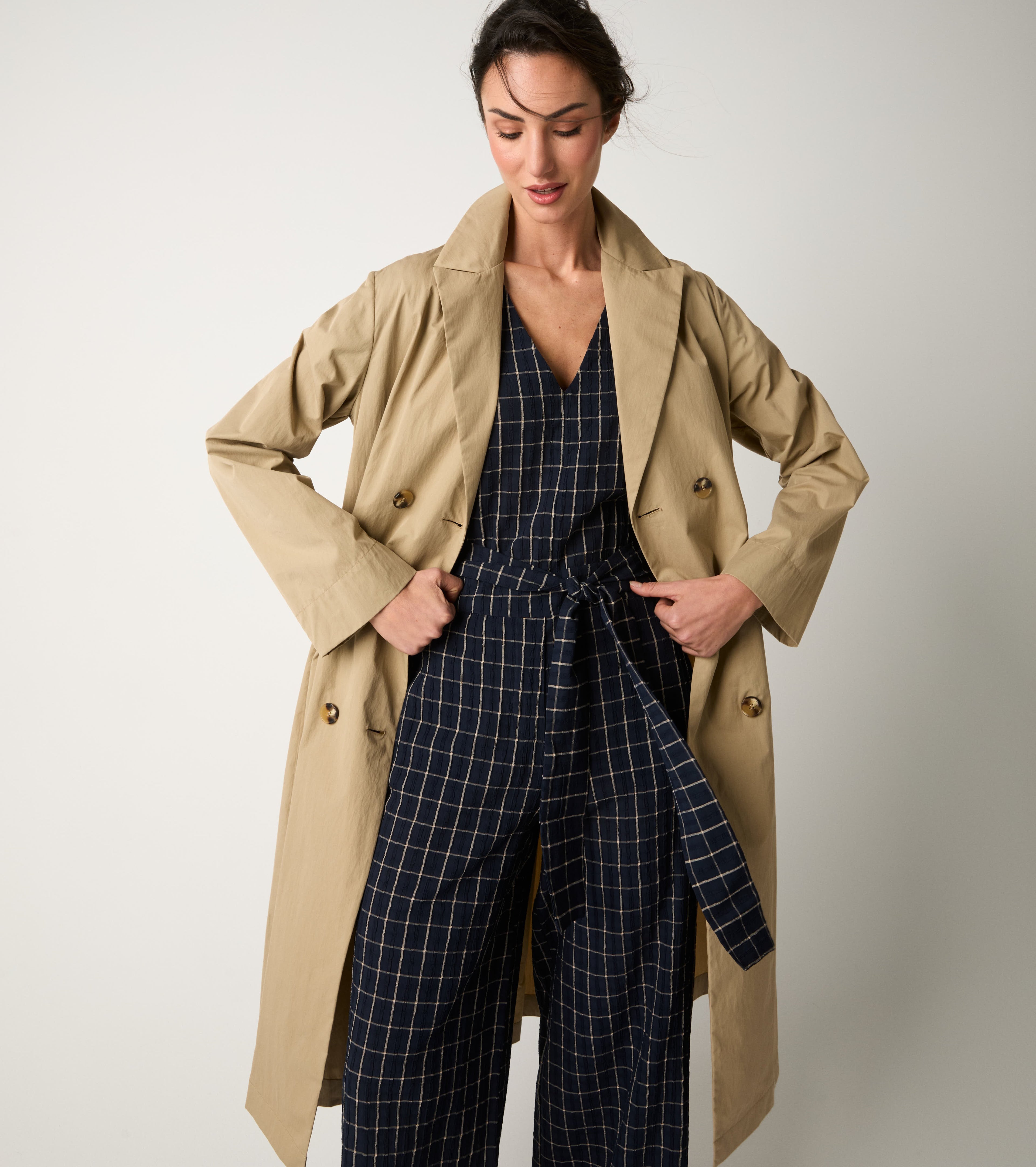 Scegli il trench realizzato in misto cotone tecnico antigoccia.